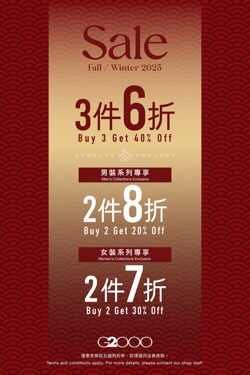 門市限時優惠:買 3 件可享 6 折;男裝買 2 件可享 8 折;女裝買 2 件可享 7 折