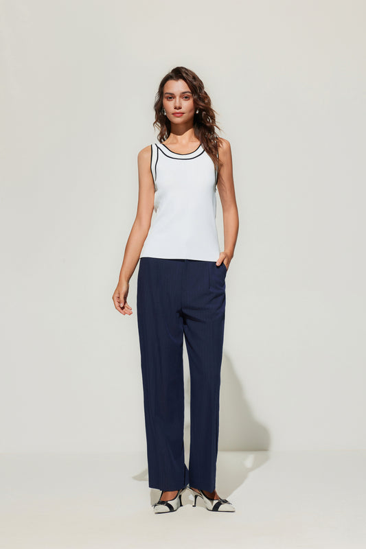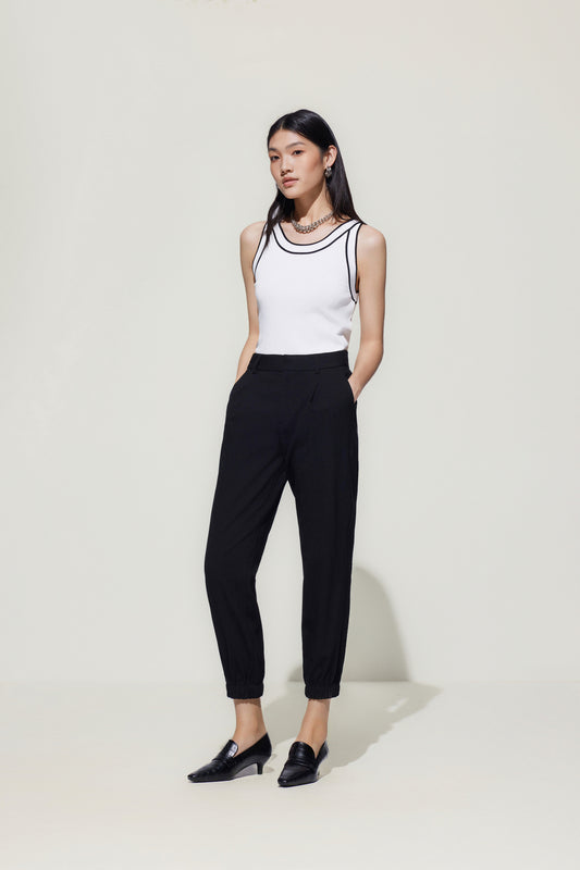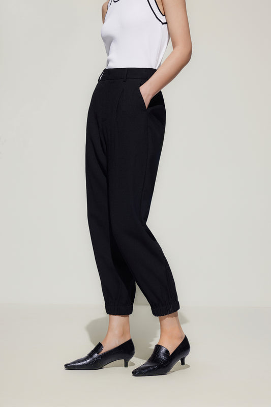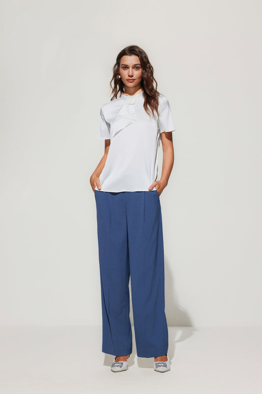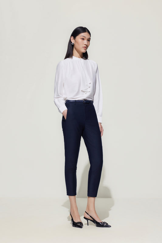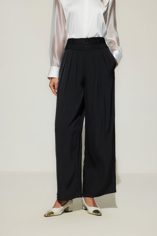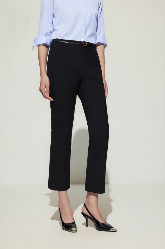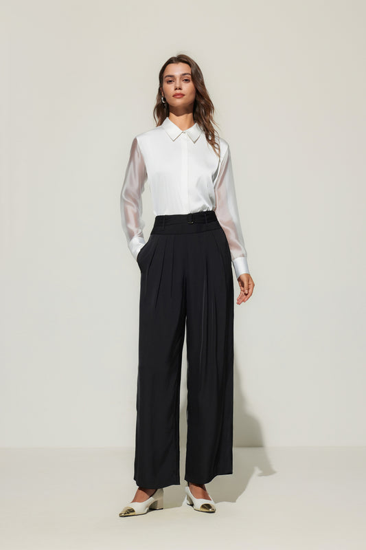寬鬆闊腳剪裁休閒長褲(配腰帶)
