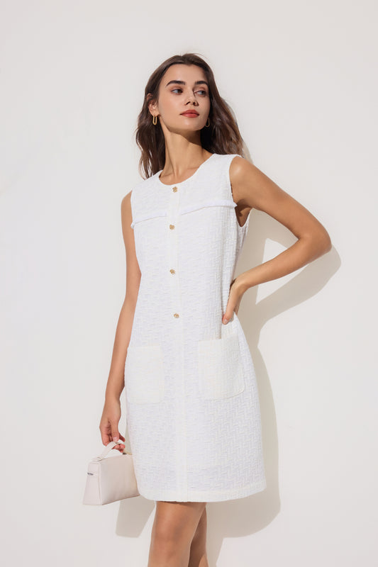 圓領短袖連身裙(配鏈條腰帶)