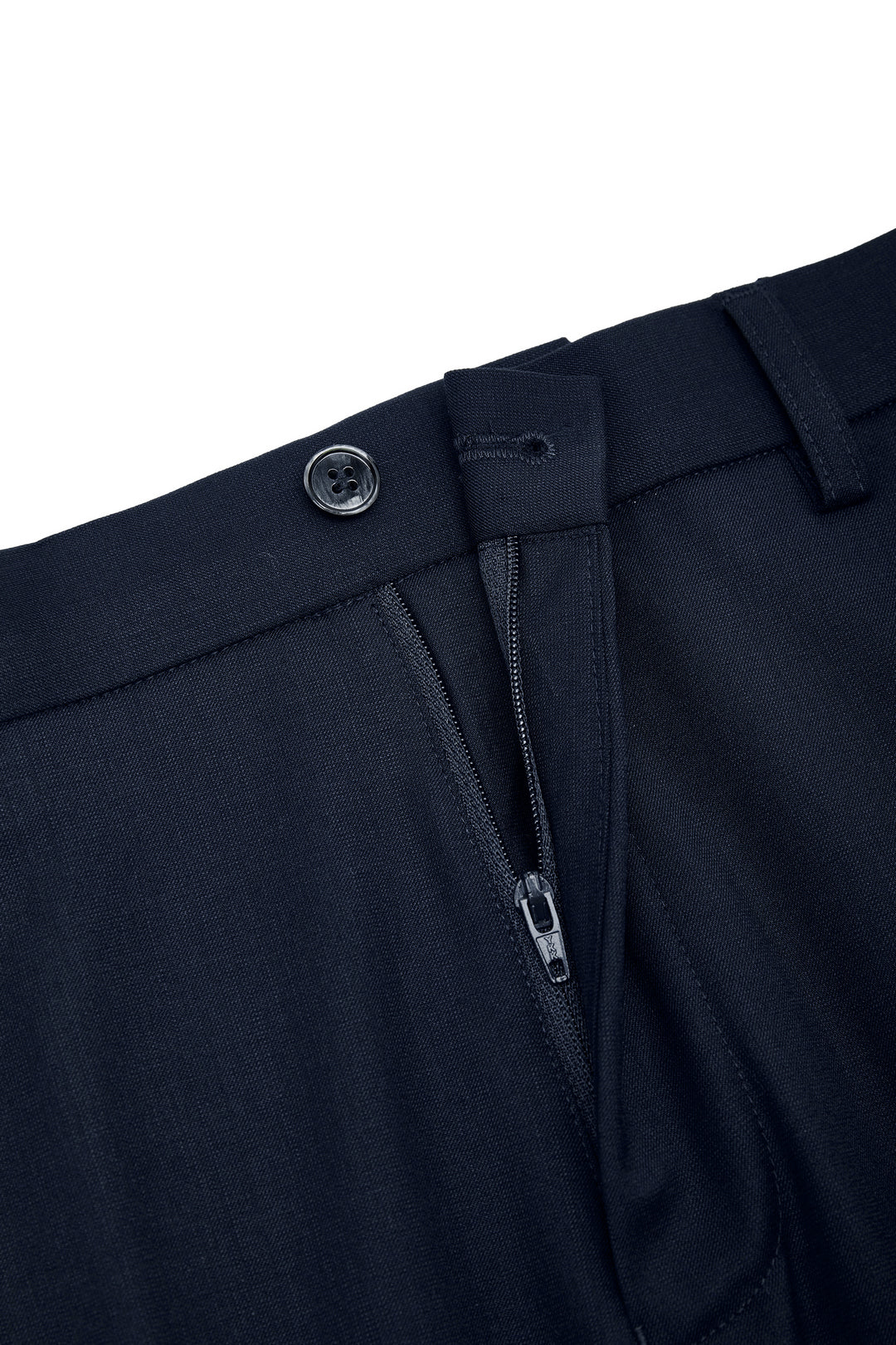 Machine Washable | Anti-Static | Anti-slip Waistband Design | Half Lining | Flat Front With Pressed Crease | Fixed Waistband With Belt Loops | Button With Zip Fly Closure | Slanted Front Pockets | Double Welt Pockets With Button Closure
