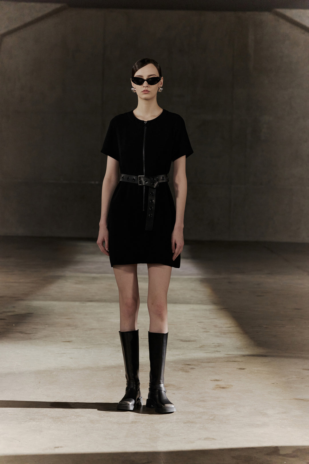 BLAACK | 圓領短袖連身裙(配腰帶)