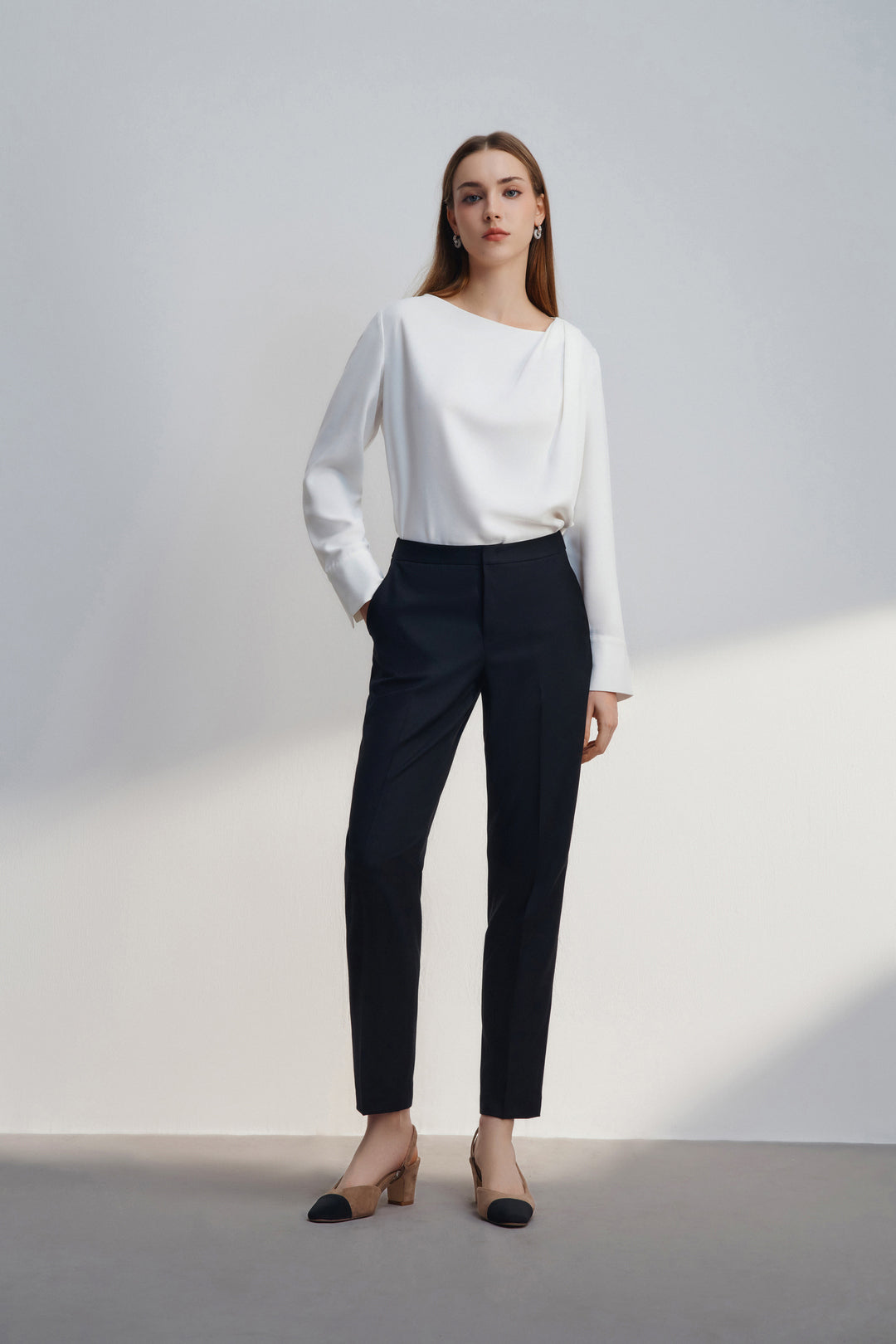 可機洗 | 防滑設計腰頭 | 內裡構造: 無裡 | 中低腰 | 斜角側袋 | 正面拉鍊和鉤扣開合