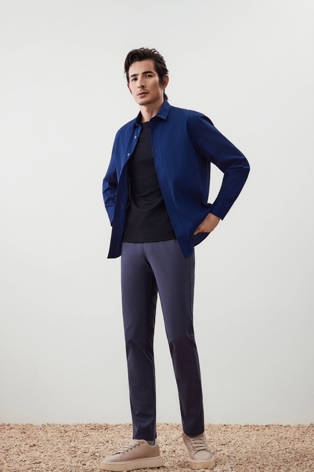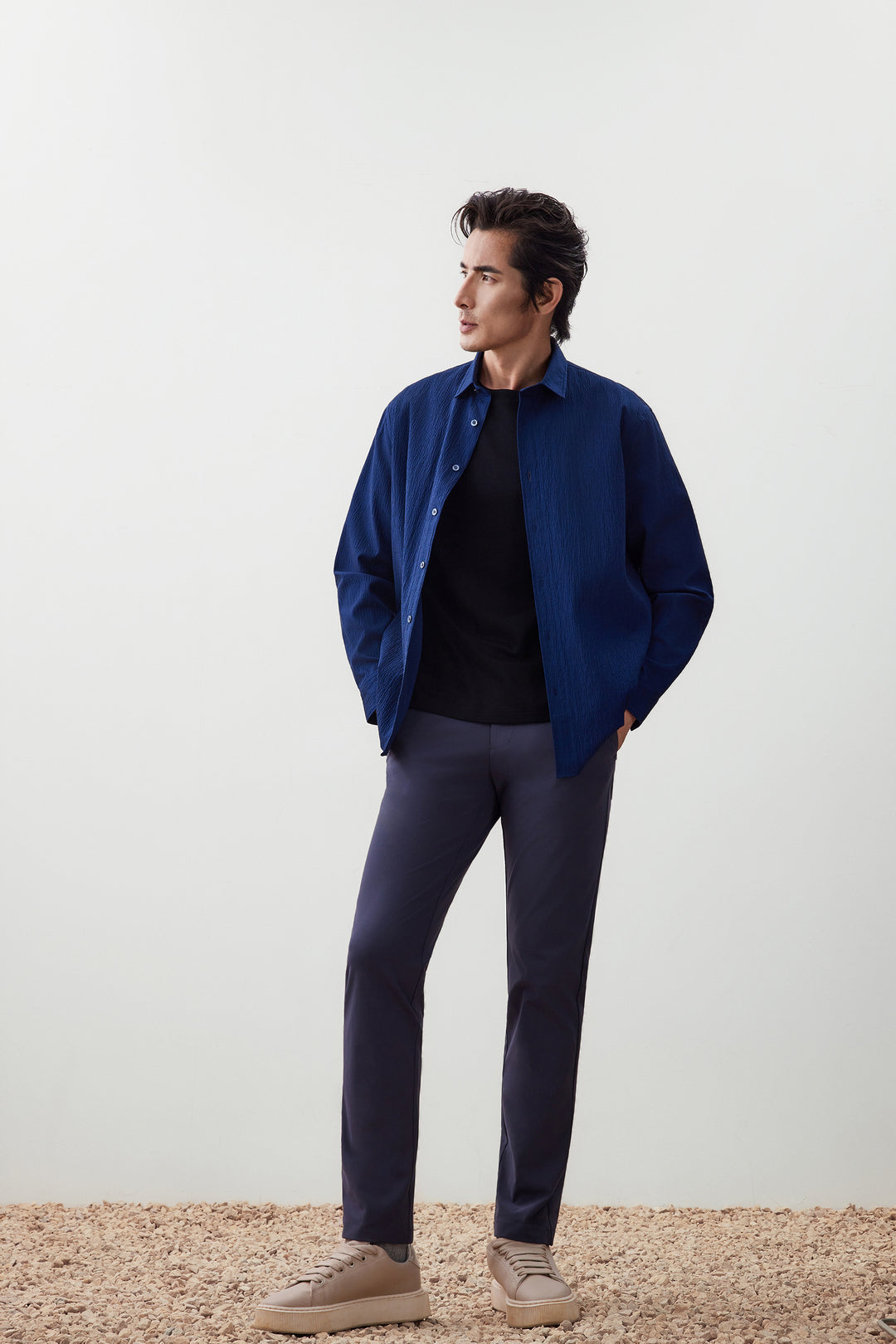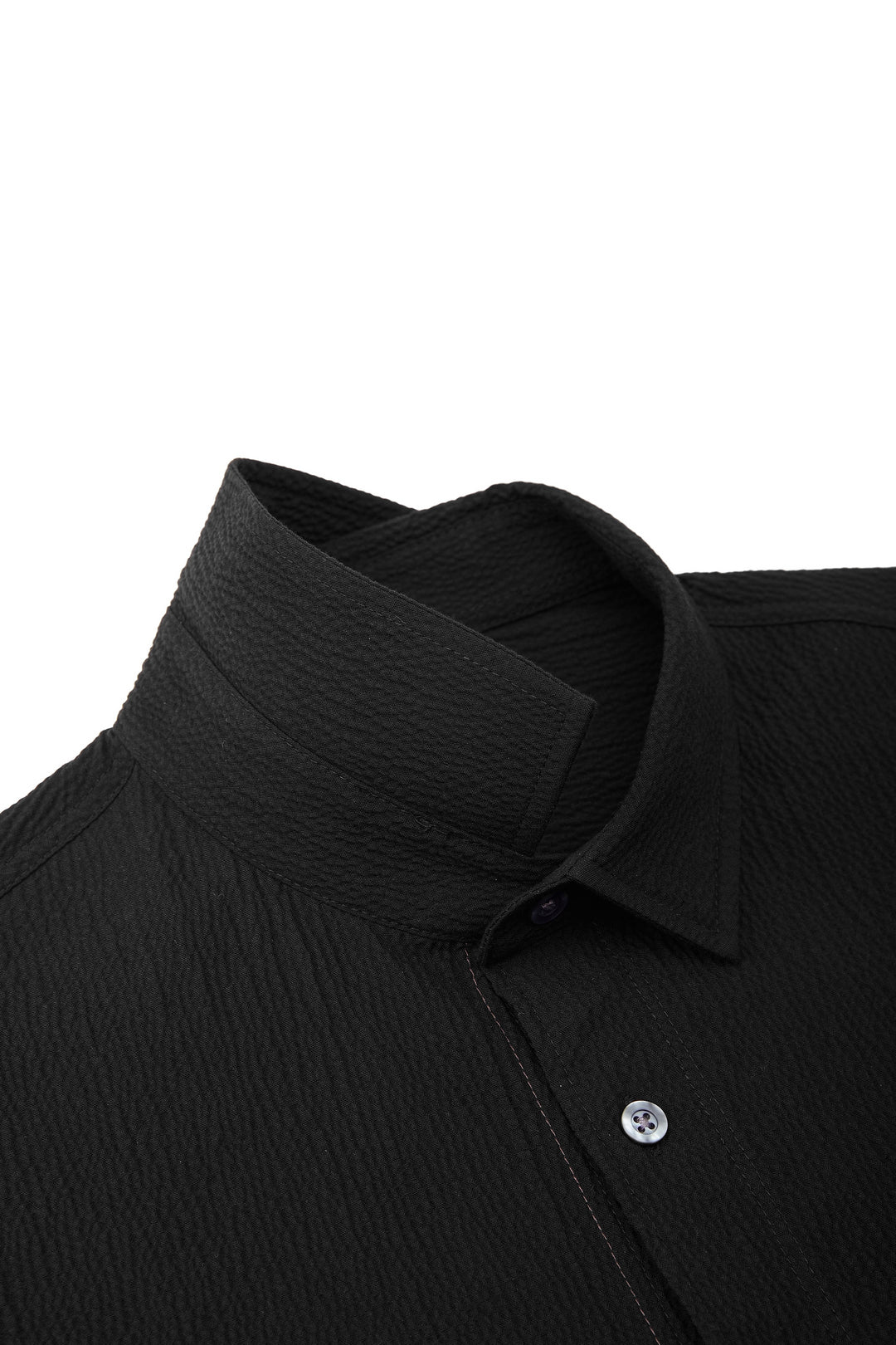 可機洗 | 窄領 | 斜角袖 | 前襟正面設計 | 一體式合縫