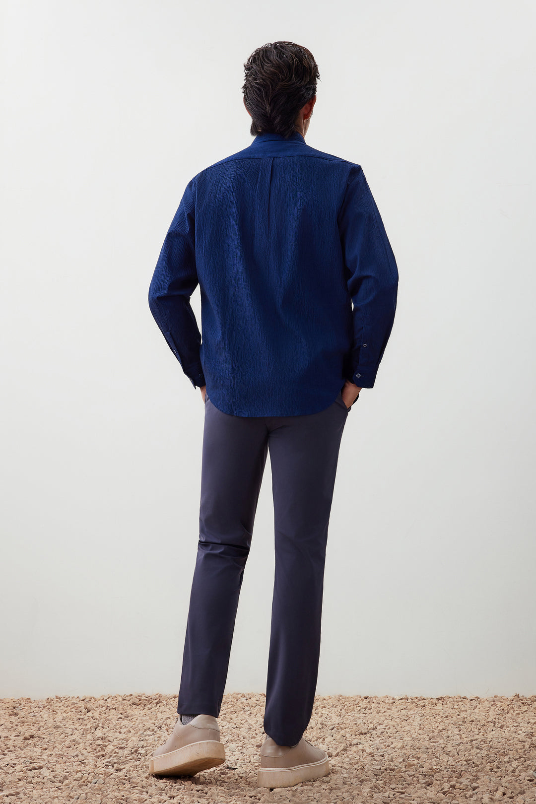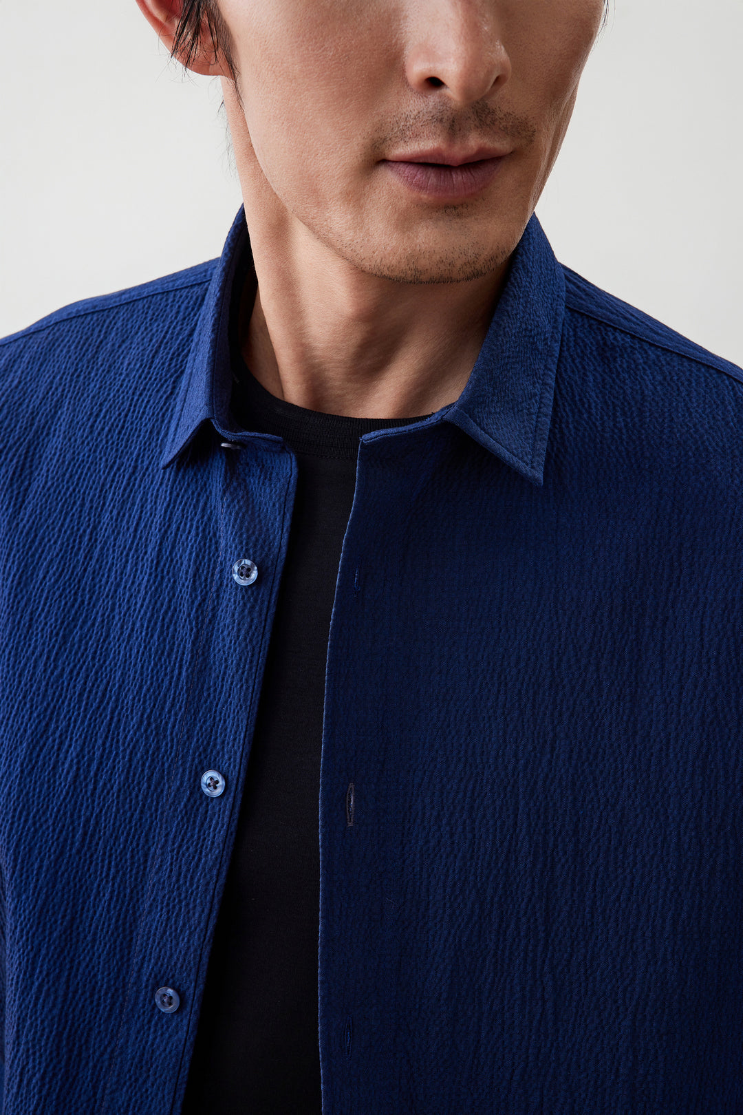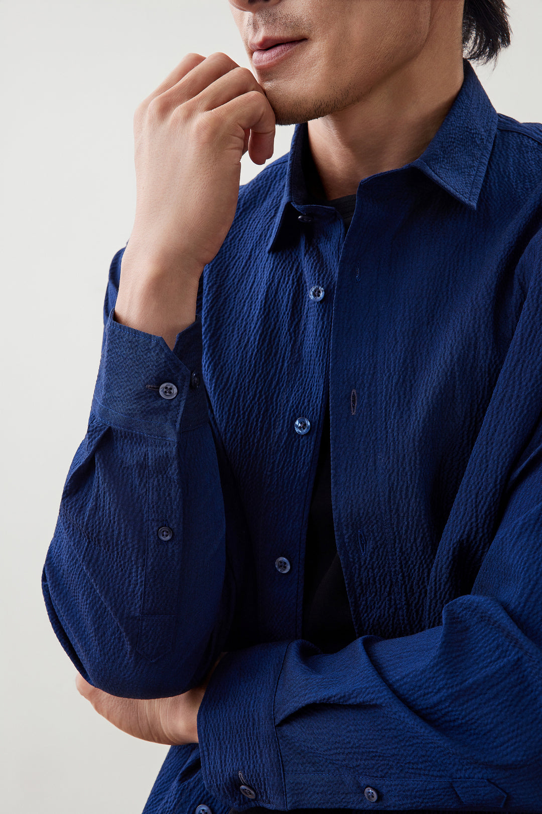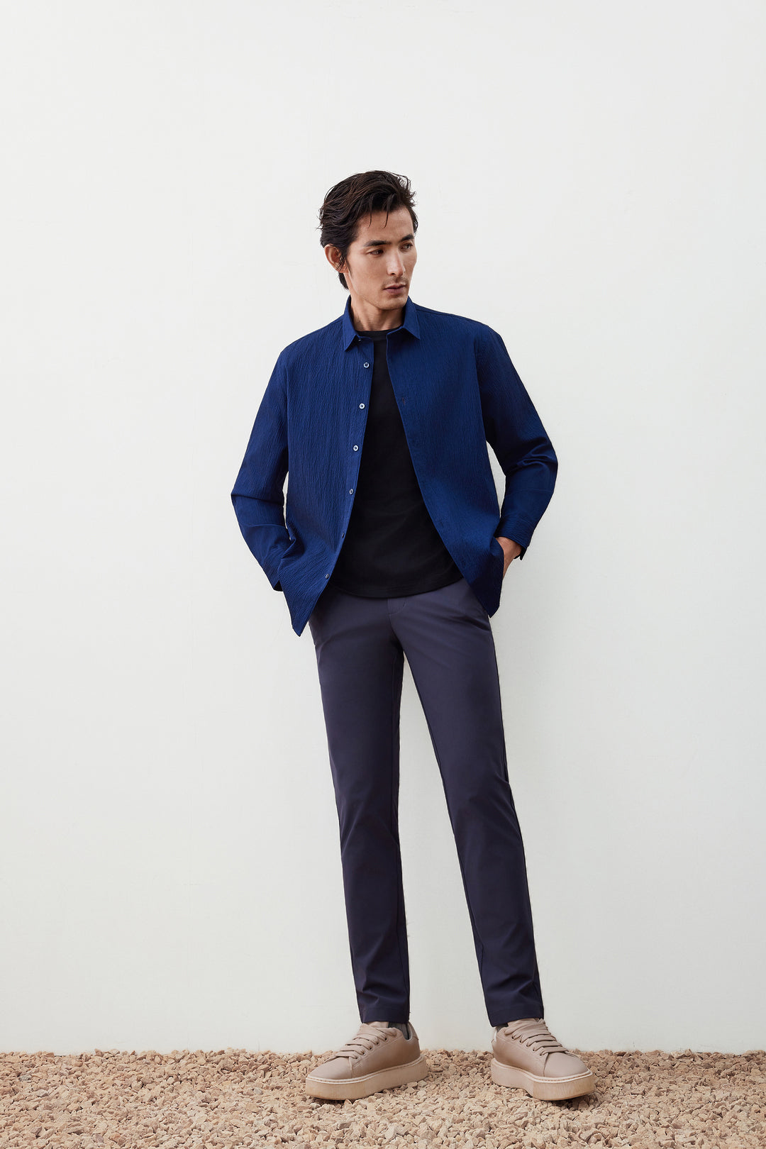 可機洗 | 窄領 | 斜角袖 | 前襟正面設計 | 一體式合縫