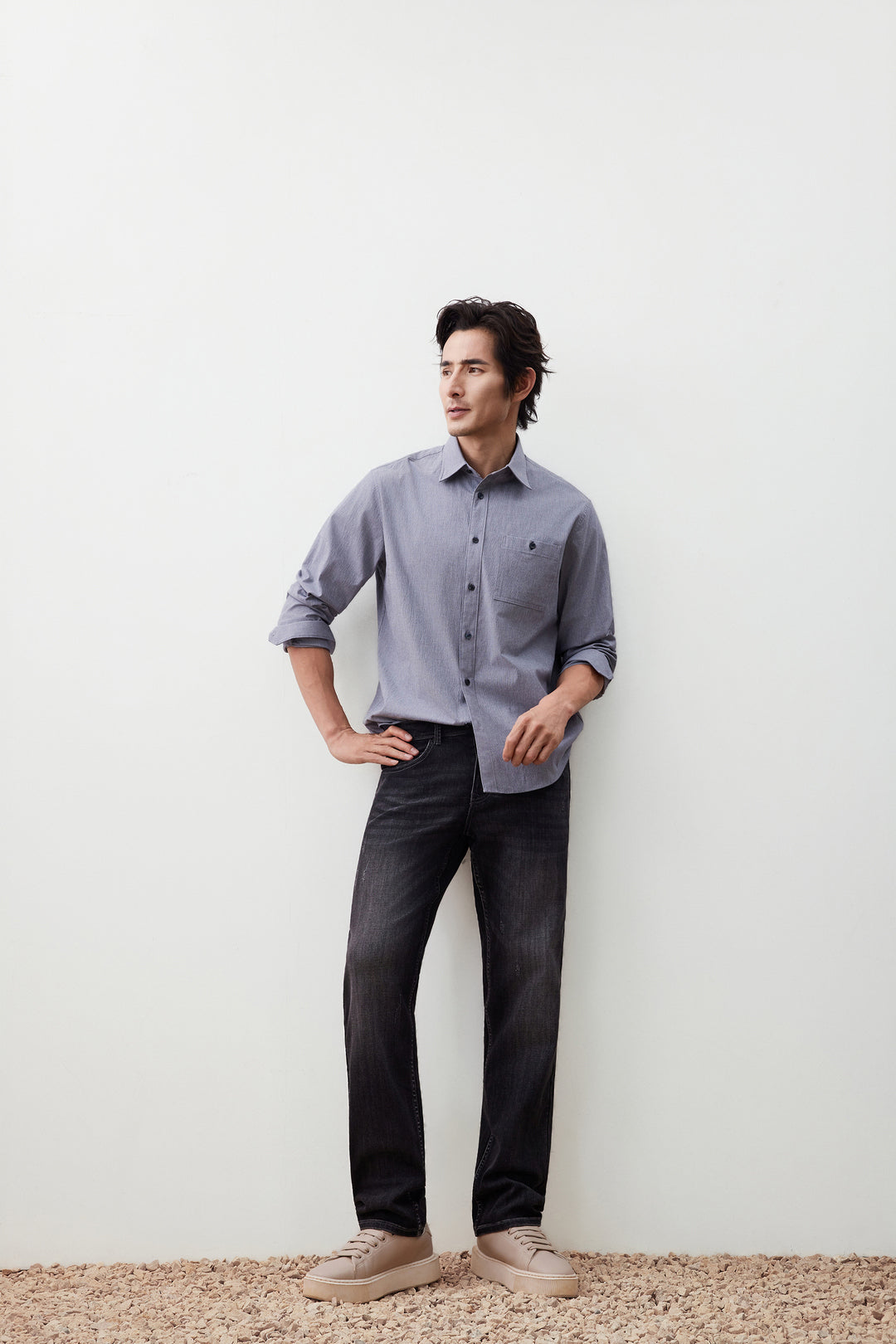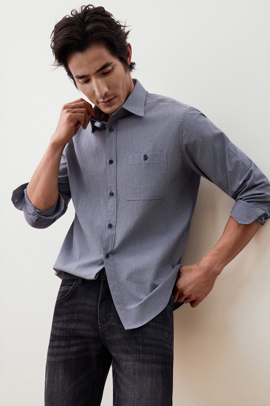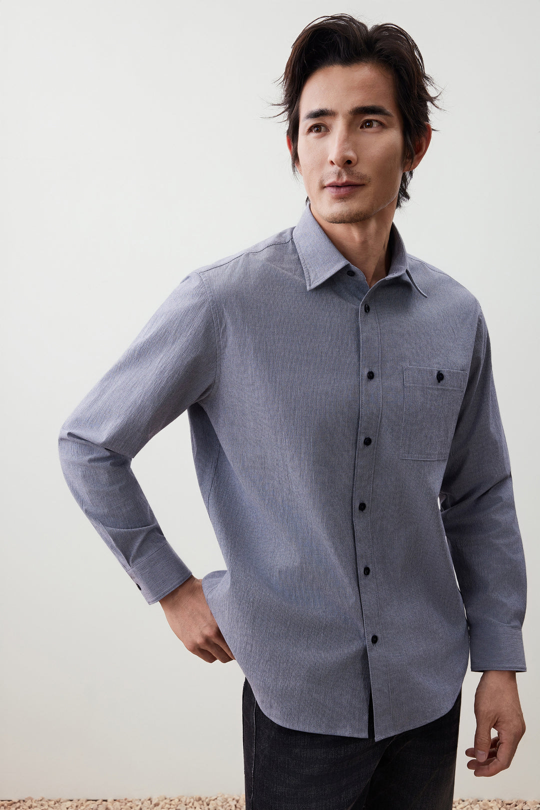 可機洗 | 窄領 | 斜角袖 | 胸口袋 | 前襟正面設計 | 一體式合縫