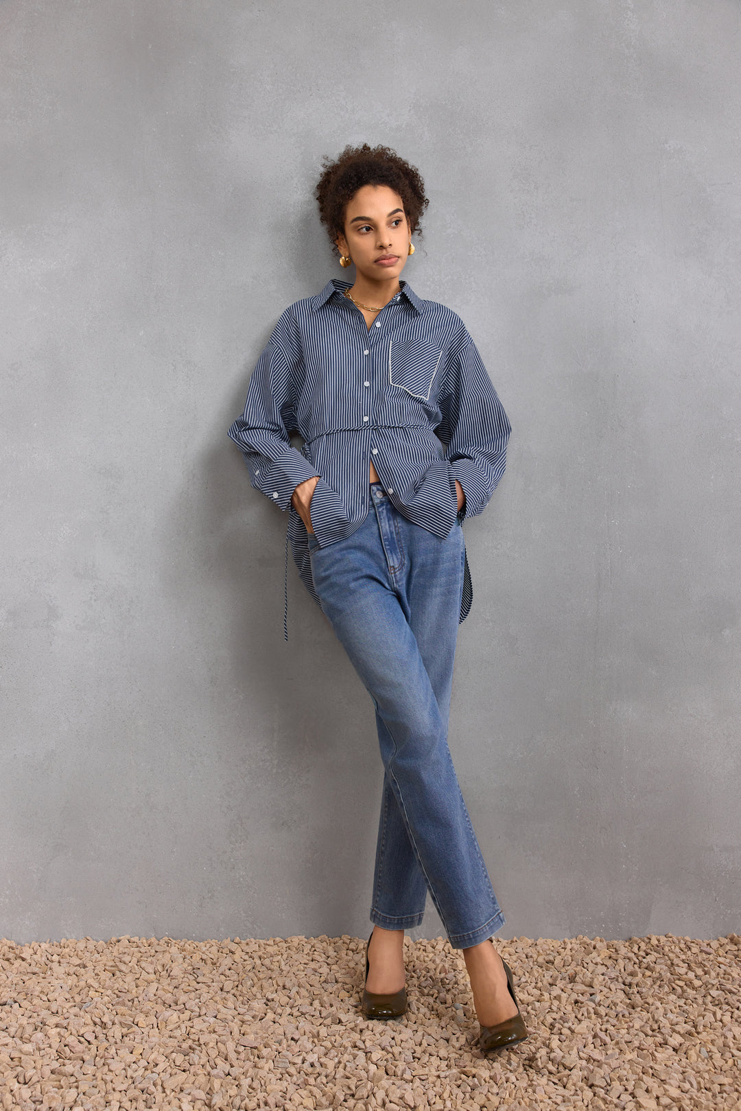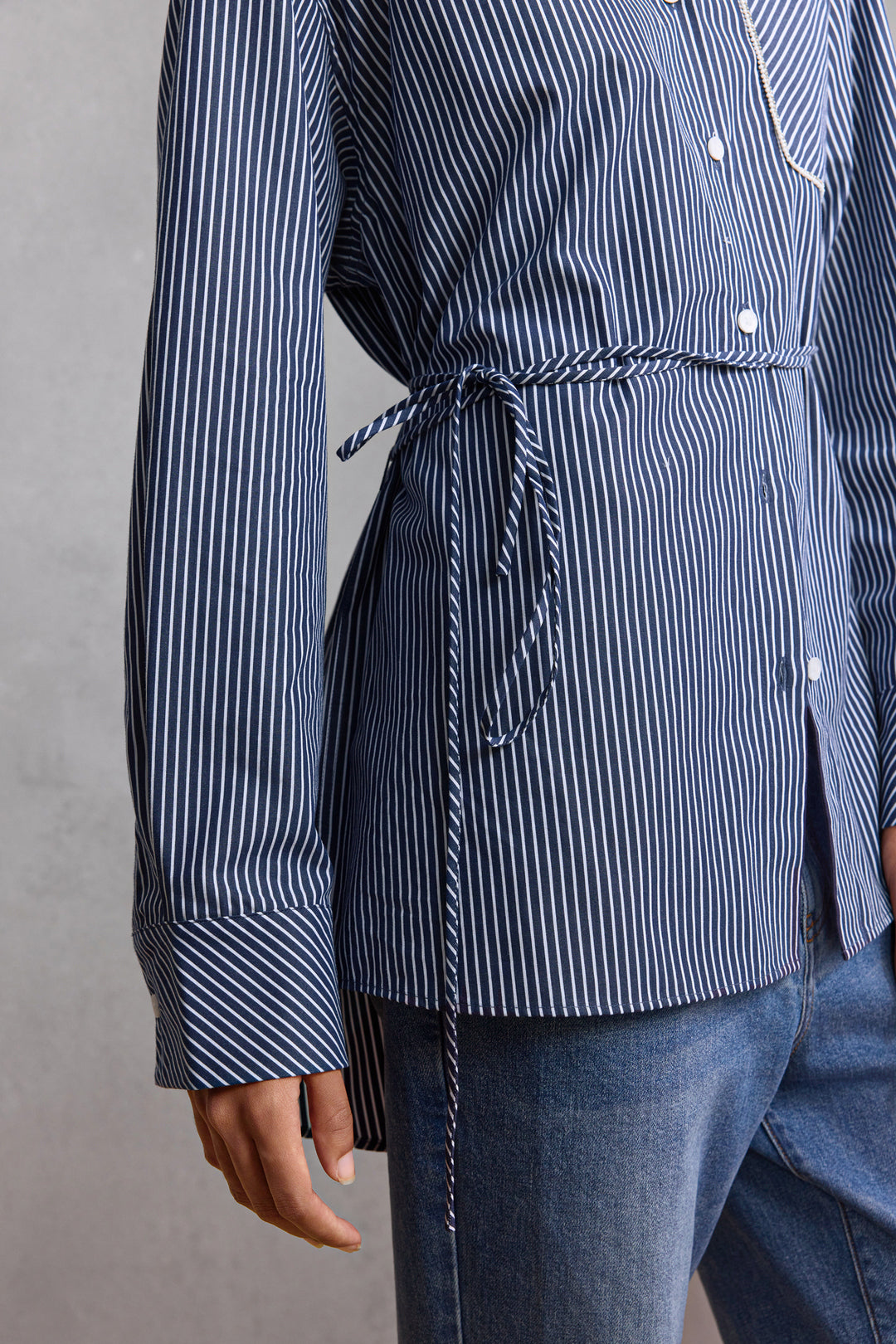 可機洗 | 附腰帶 | 翻領 | 內裡構造: 無裡 | 長袖 | 斜胸口袋 | 前襟鈕扣正面設計