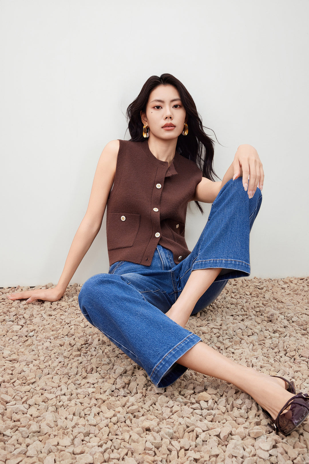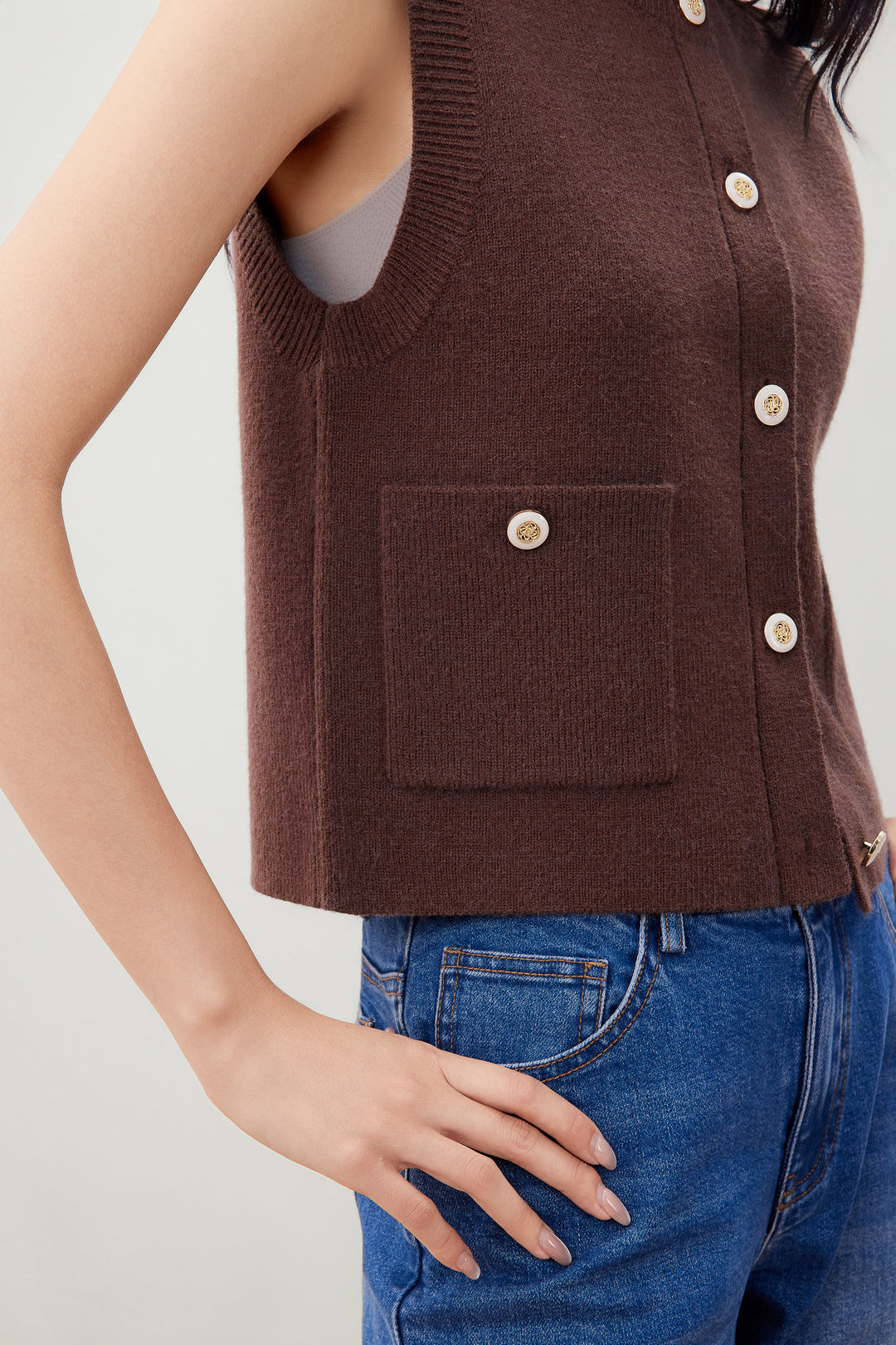圓領無袖針織外套