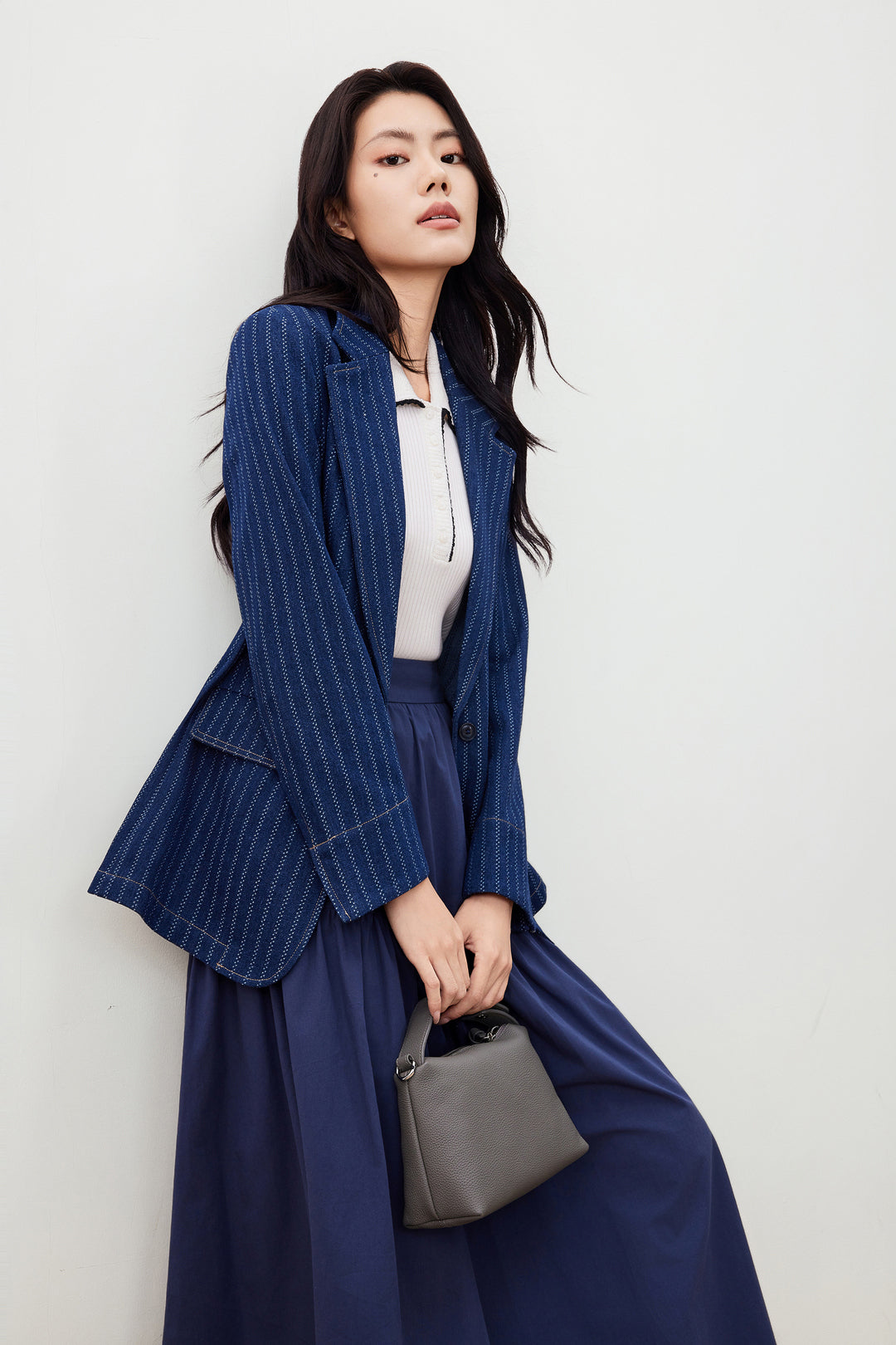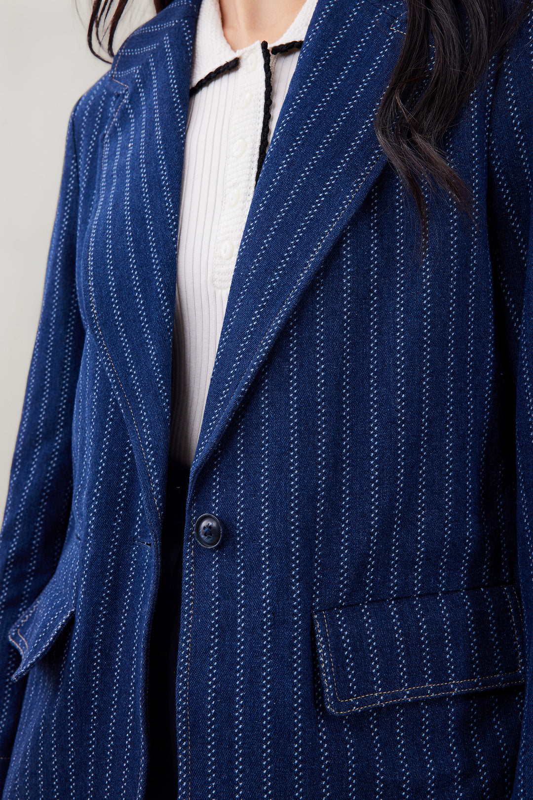 Denim 標準領獨立西裝外套