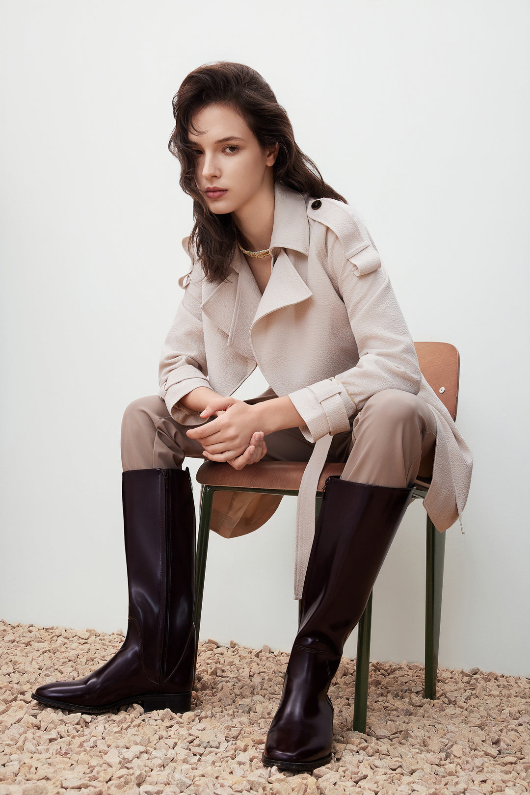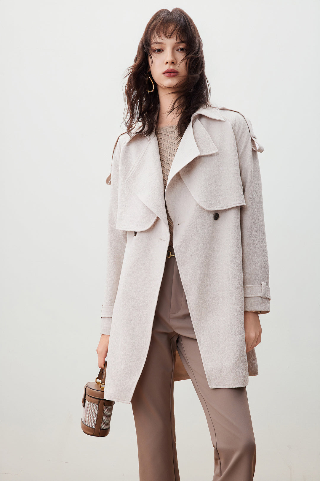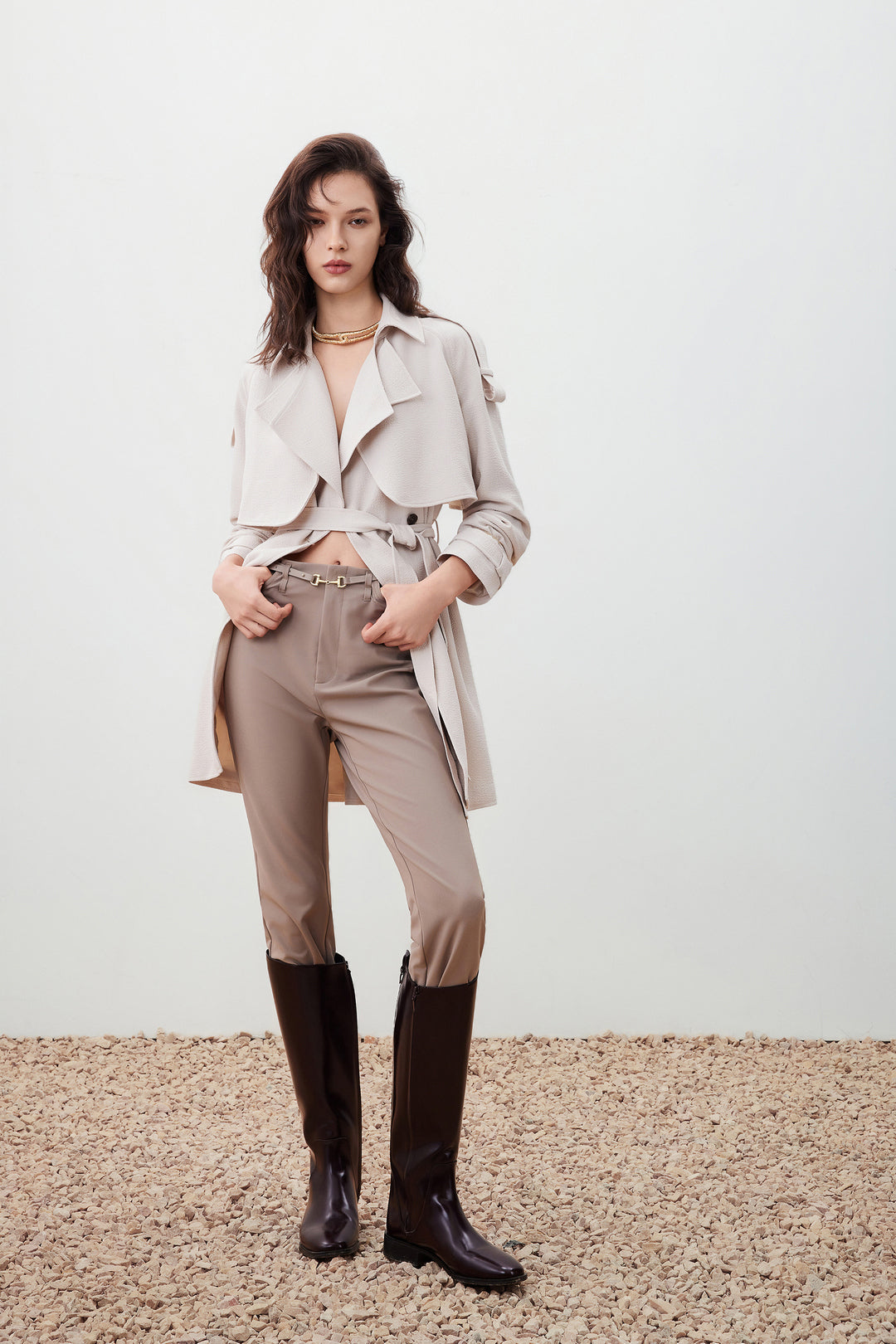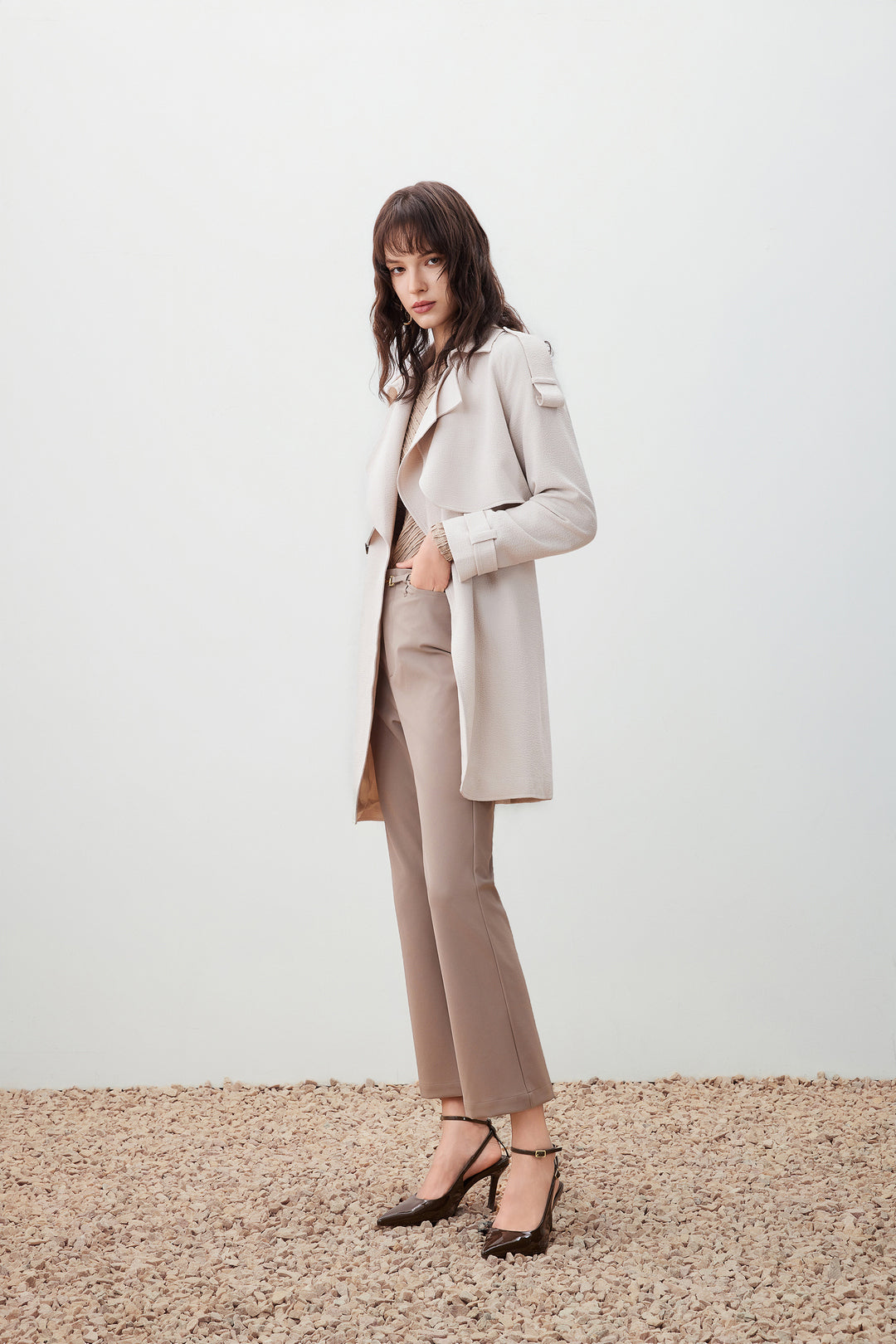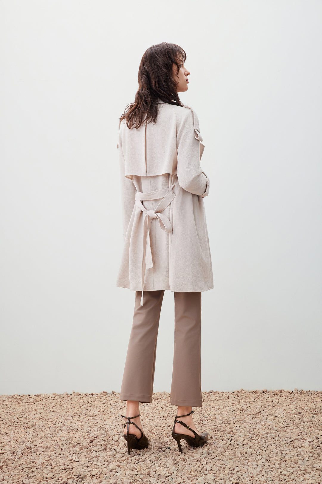 可機洗 | 附原身布腰帶 | 翻領 | 內裡構造: 全裡 | 長袖 | 側袋 | 開胸款式正面設計