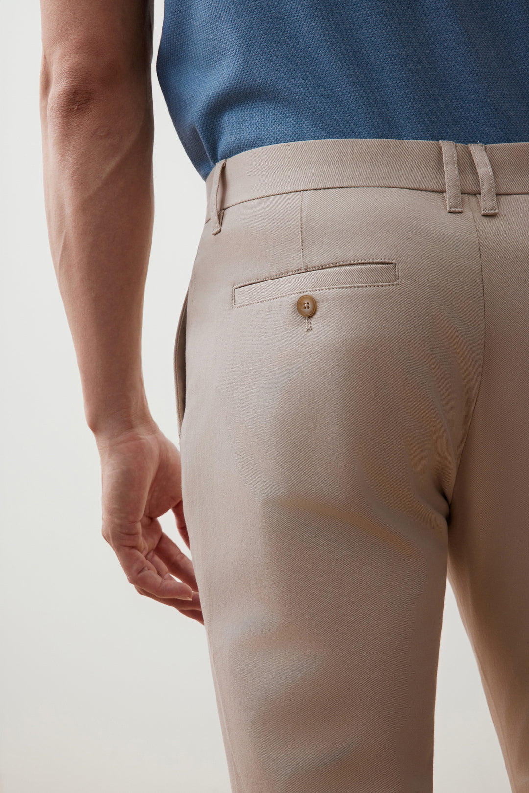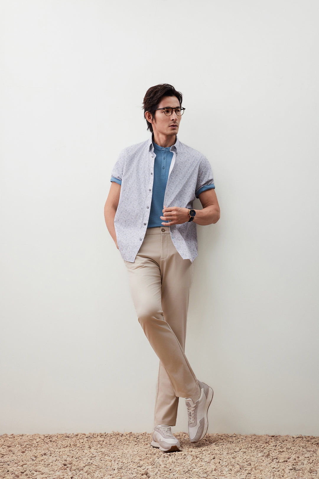 可機洗 | Multi-Way Stretch多面彈性 | 平腳無褶 | 固定式腰頭設計 | 附褲頭圈 | 鈕扣配拉鍊門襟 | 斜插袋 | 雙嵌線後袋 | 附鈕扣