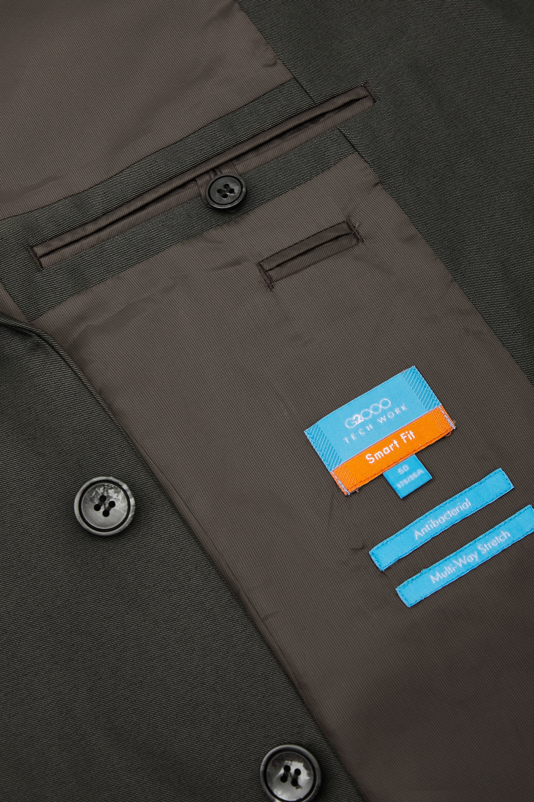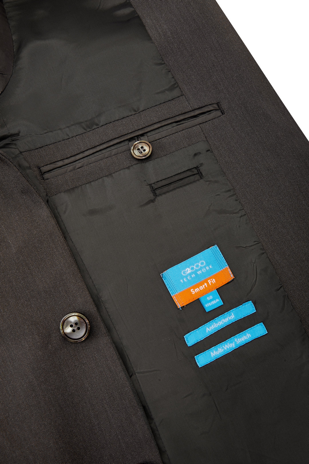 可機洗 | Multi-Way Stretch多面彈性 | Anti-Bacterial抗菌功能 | 劍領 | 全裡內裡構造 | 內袋&筆袋 | 3顆鈕 | 斜袋 | 2顆鈕正面設計 | 雙叉