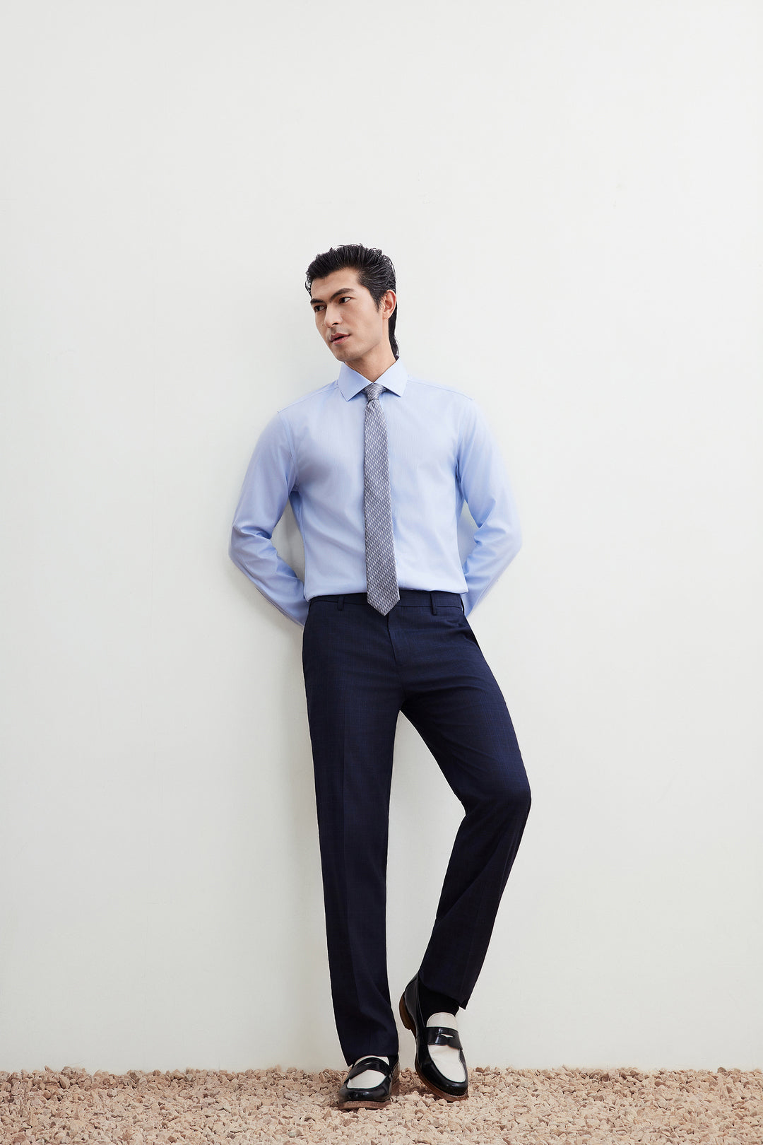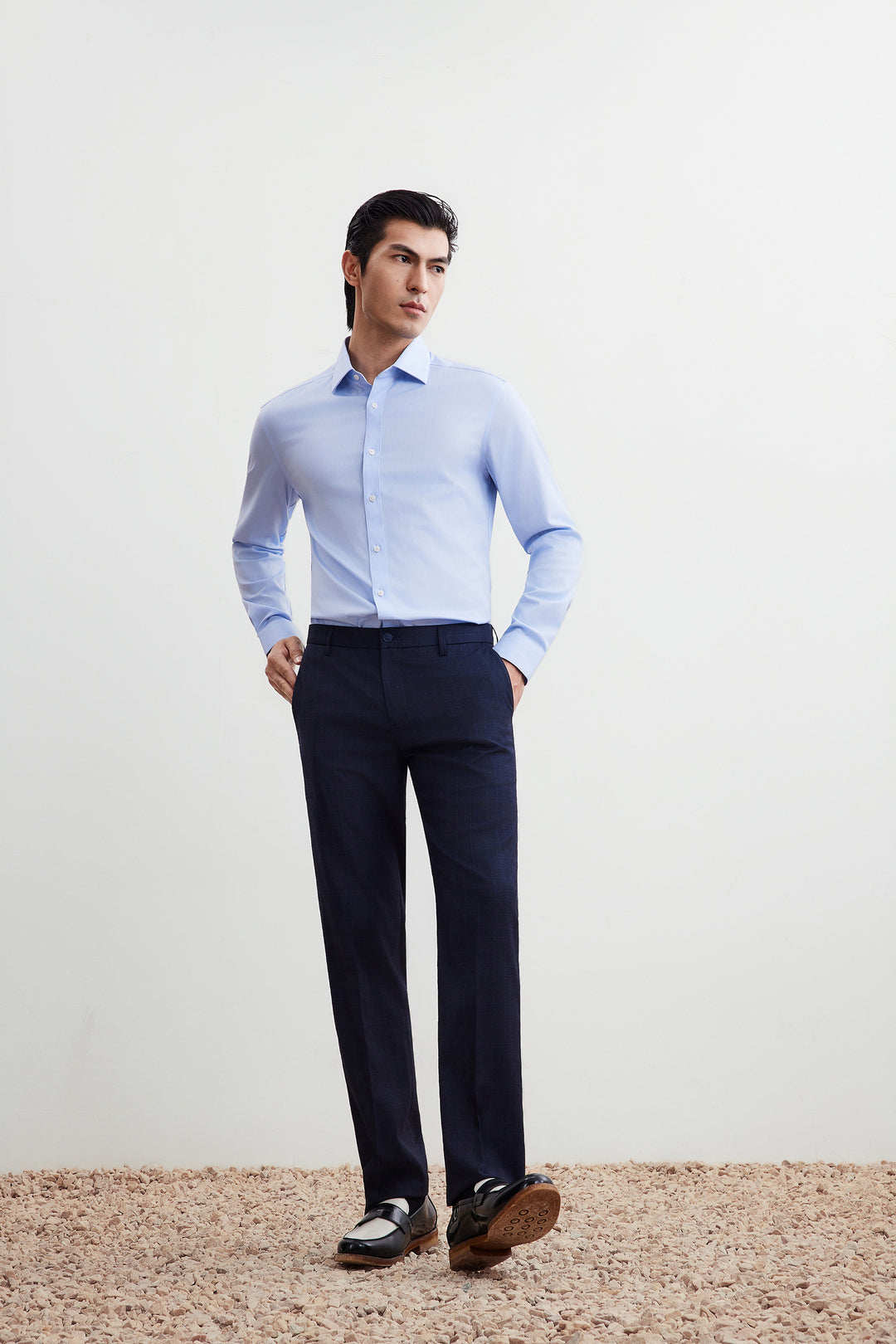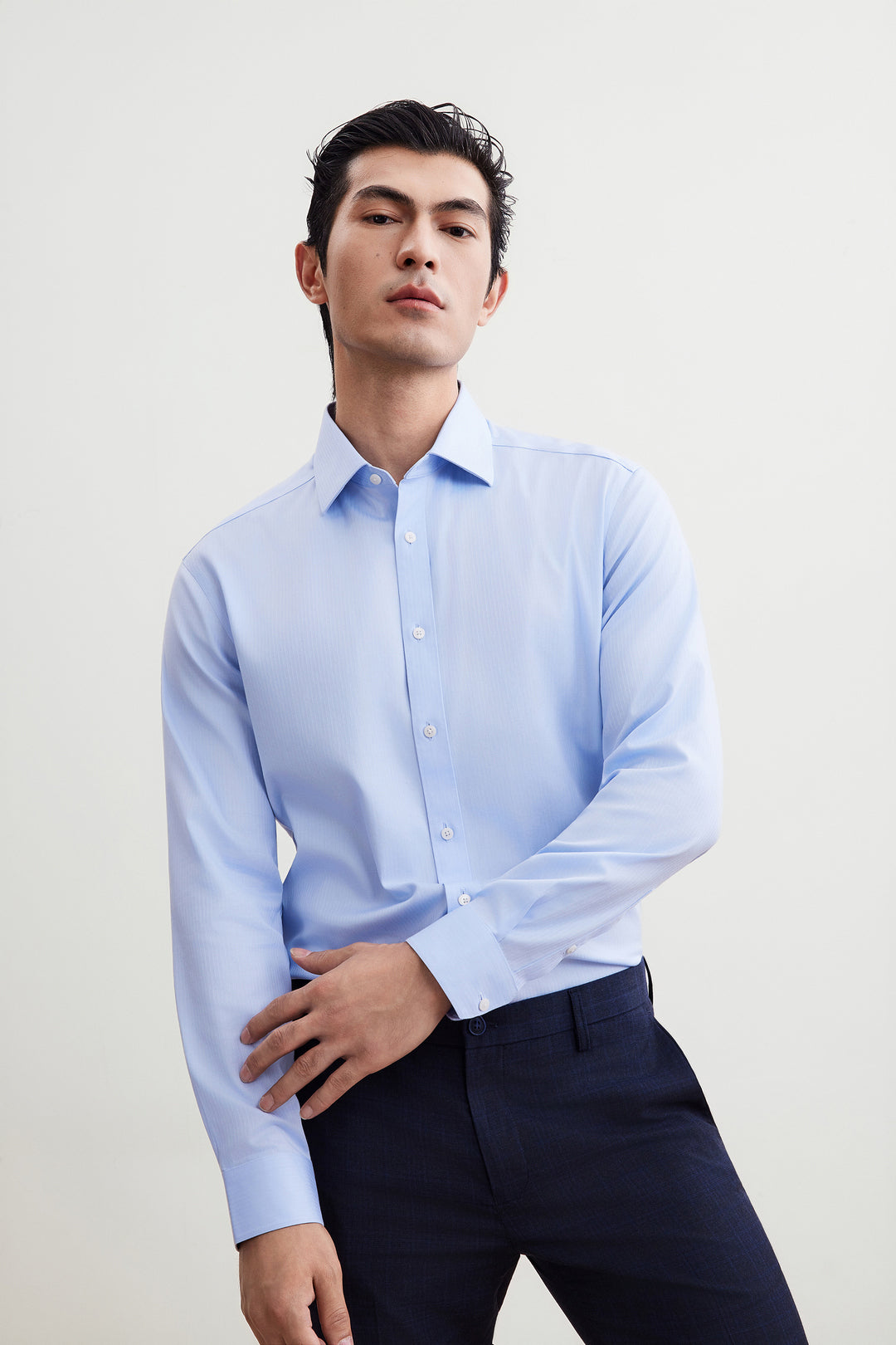 Non-Iron免熨防皺技術處理 | 可機洗 | 半寬領 | 配衣領撐 | 斜角袖 | 前襟正面設計 | 一體式合縫