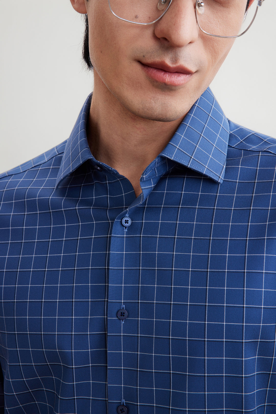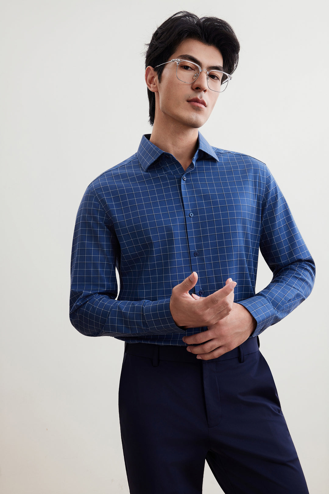 Non-Iron免熨防皺技術處理 | 可機洗 | 半寬領 | 配衣領撐 | 斜角袖 | 無前襟正面設計 | 一體式合縫
