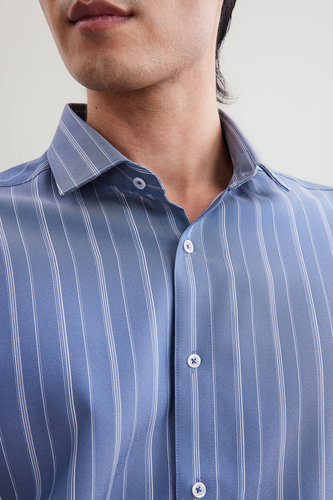 Non-Iron免熨防皺技術處理 | 可機洗 | Dry速乾 | Anti-Static防靜電功能 | 寬角領 | 配衣領撐 | 圓形袖 | 前襟正面設計 | 一體式合縫