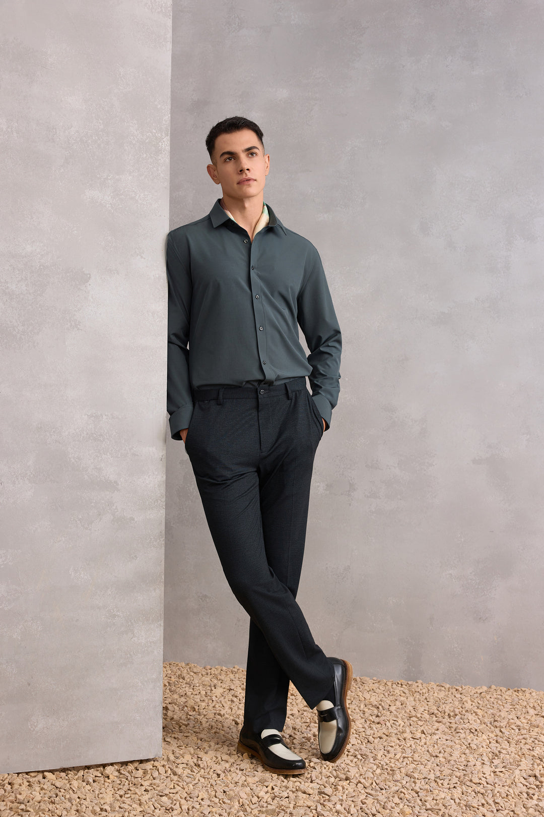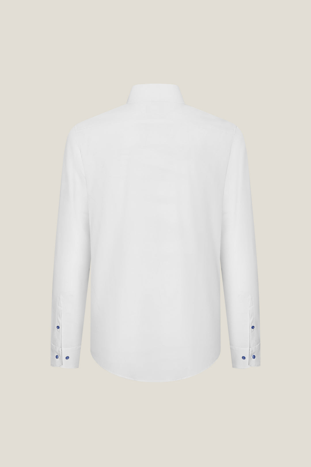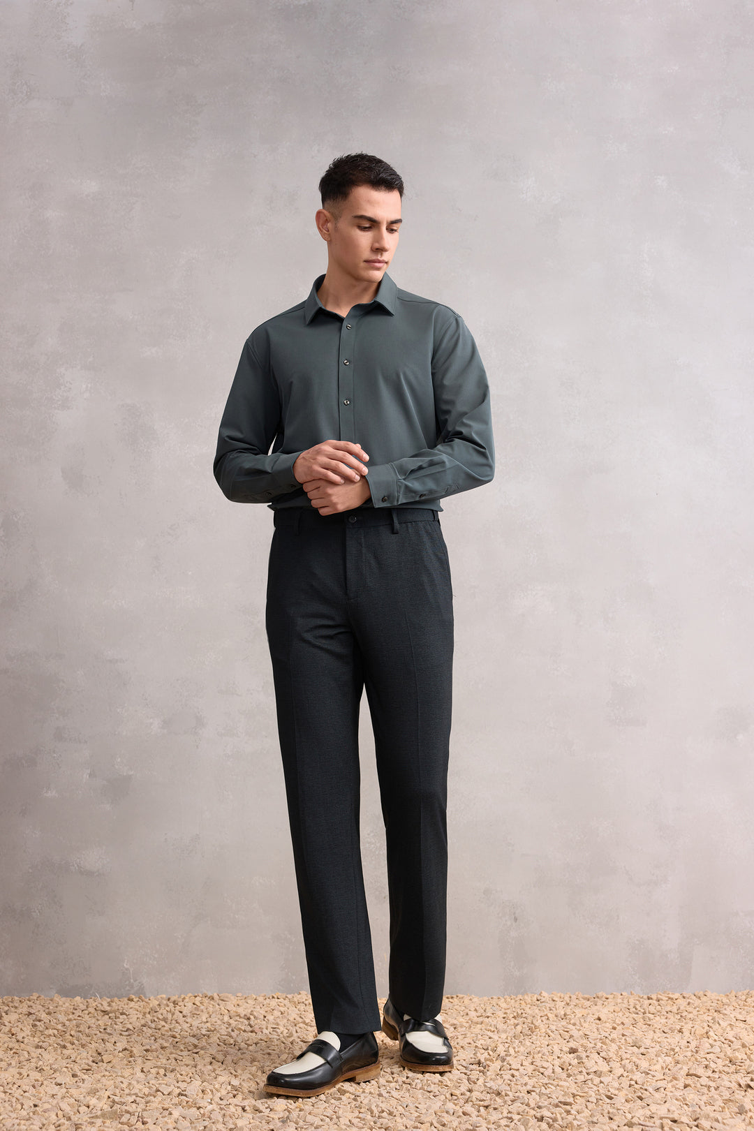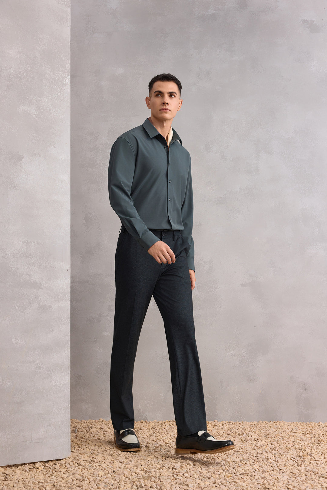Non-Iron免熨防皺技術處理 | 可機洗 | Dry速乾 | Multi-Way Stretch多面彈性 | Anti-Static防靜電功能 | 窄領 | 配衣領撐 | 圓形袖 | 前襟正面設計 | 一體式合縫