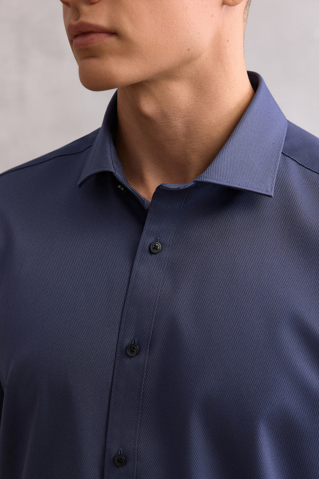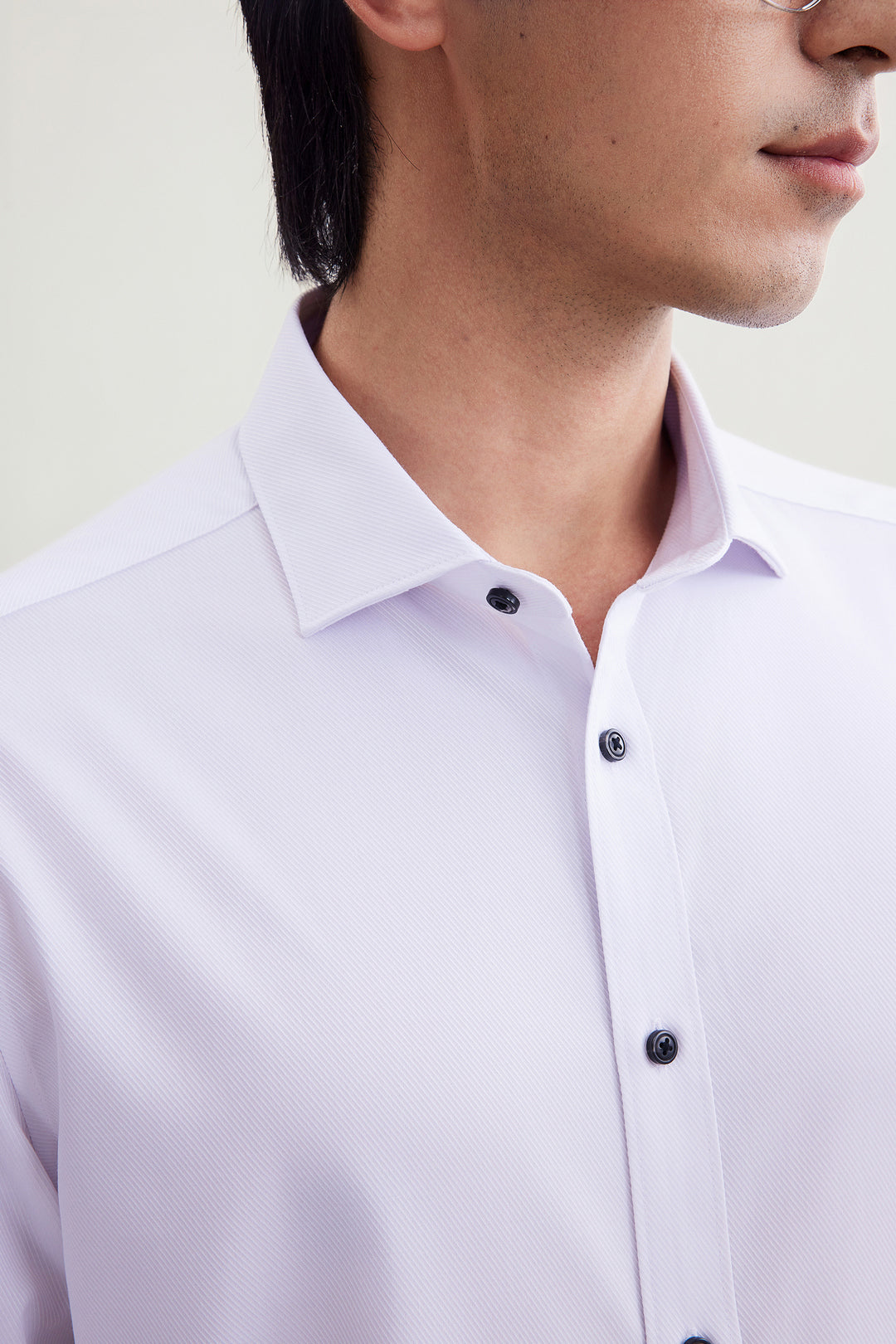 Non-Iron免熨防皺技術處理 | 可機洗 | 寬角領 | 配衣領撐 | 圓形袖 | 前襟正面設計 | 一體式合縫