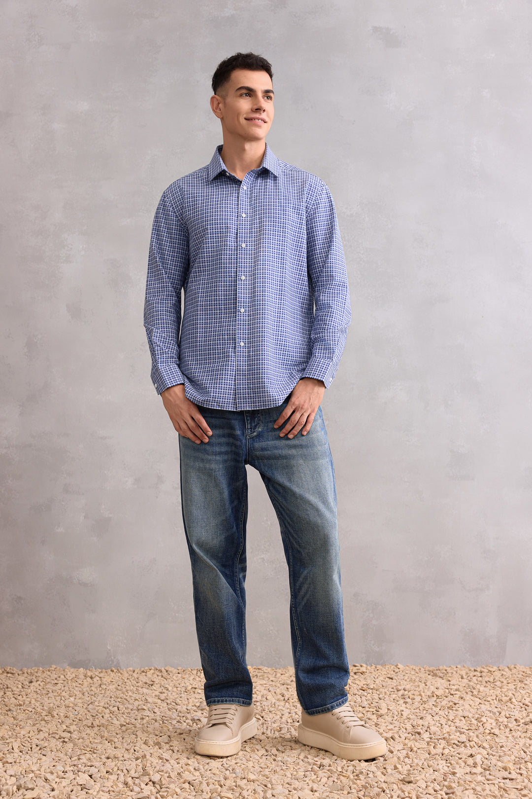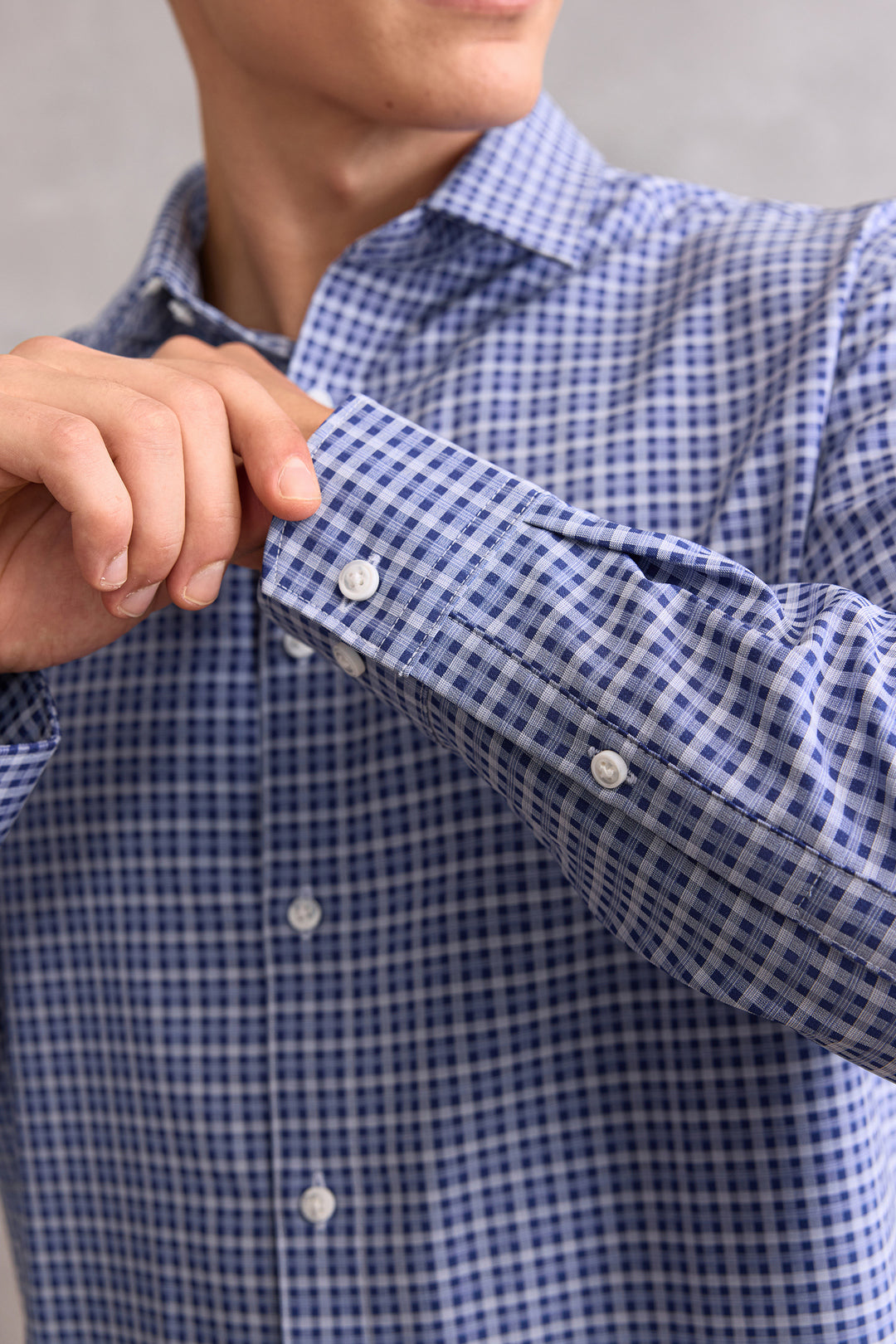 Non-Iron免熨防皺技術處理 | 可機洗 | Dry速乾 | Anti-Static防靜電功能 | 窄領 | 配衣領撐 | 圆形袖 | 前襟正面設計 | 一體式合縫