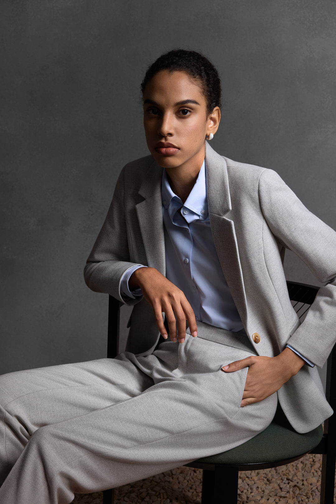 可機洗 | 標準領 | 內裡構造: 全裡 | 長袖 | 斜蓋口袋 | 單鈕扣正面設計