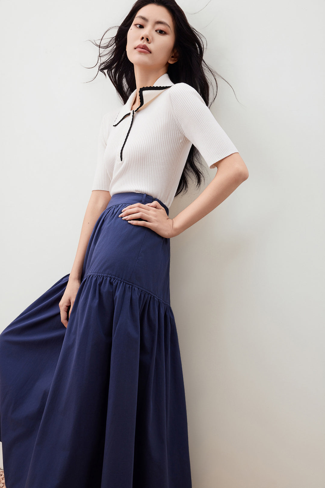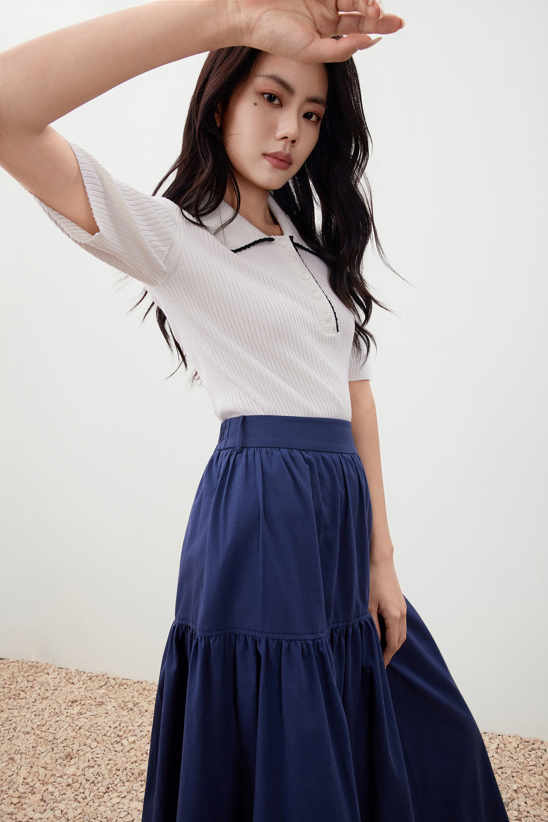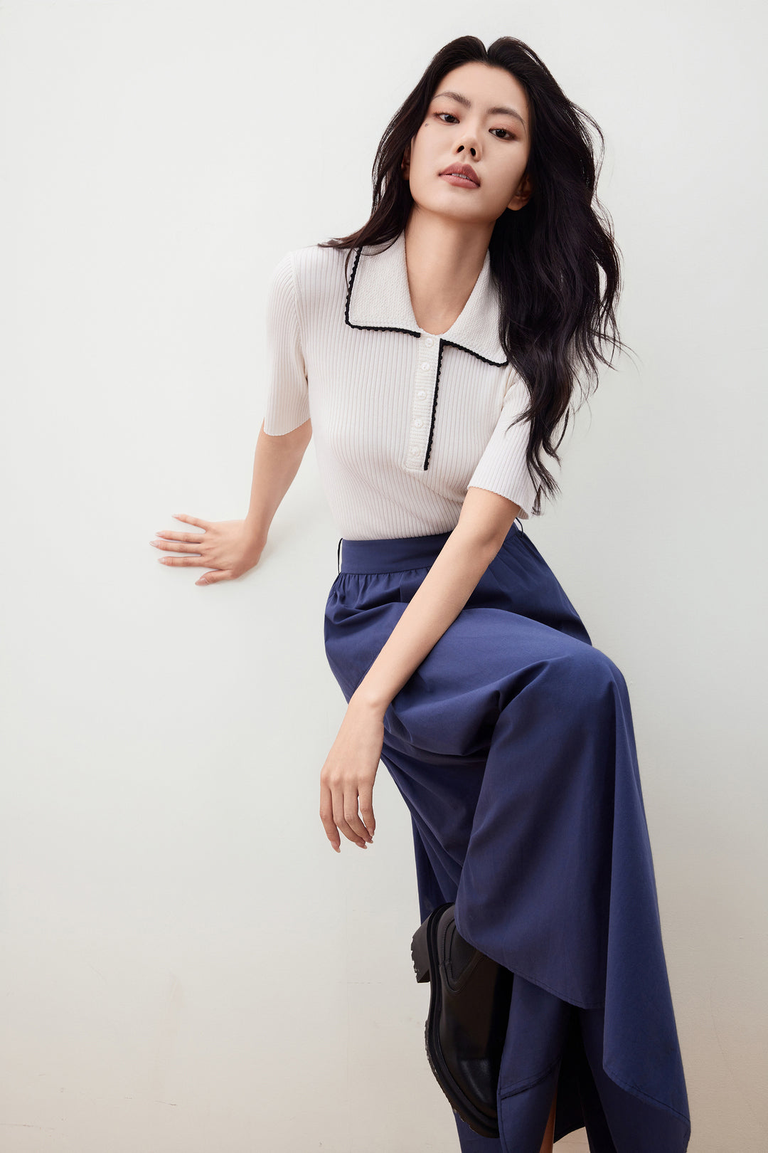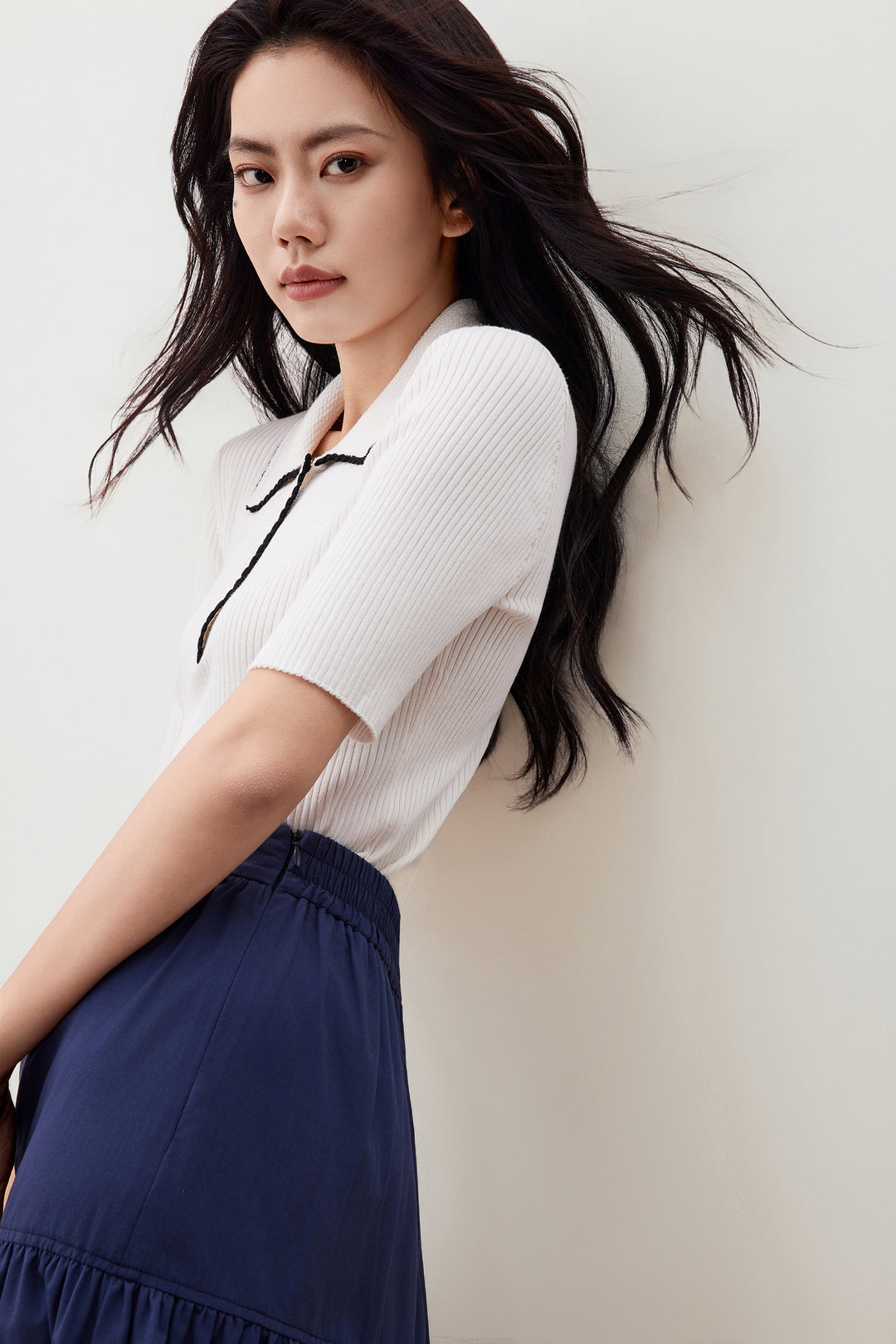 Polo領中袖針織毛衣