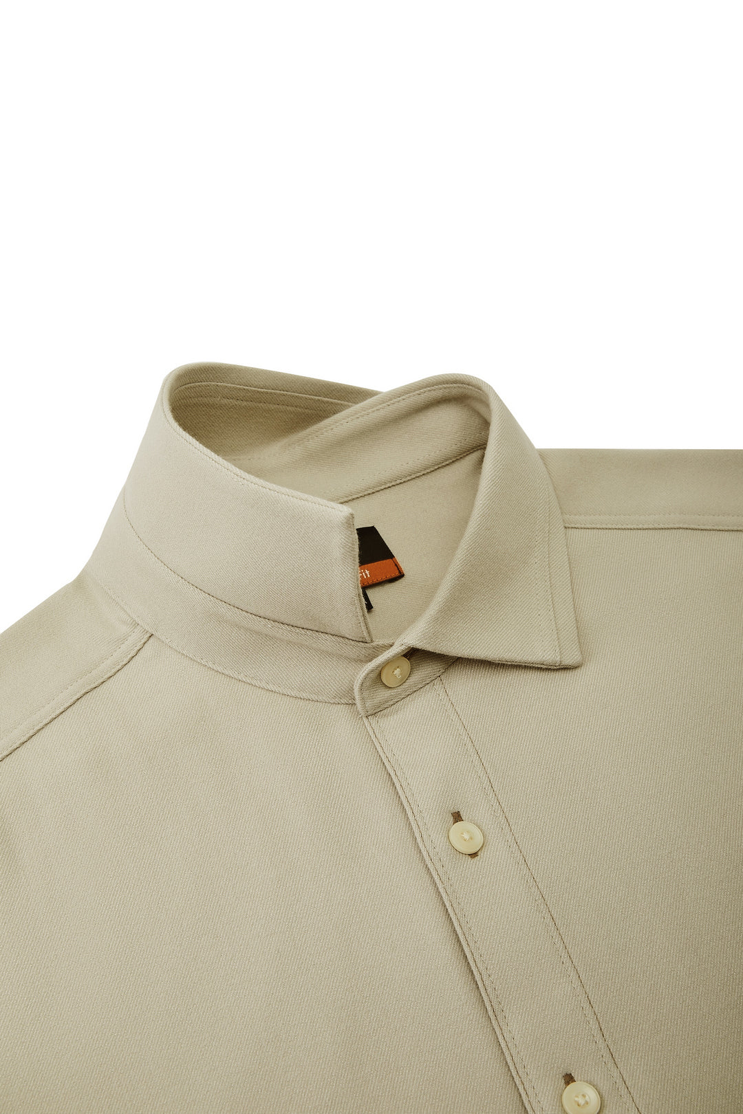 可機洗 | 半寬領 | 圆形袖 | 前襟正面設計 | 一體式合縫