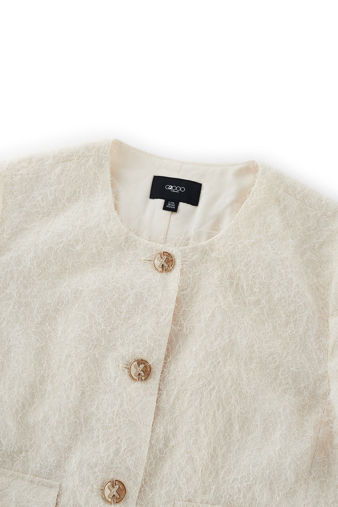 圓領 | 內裡構造: 全裡 | 長袖 | 貼袋 | 前襟鈕扣正面設計
