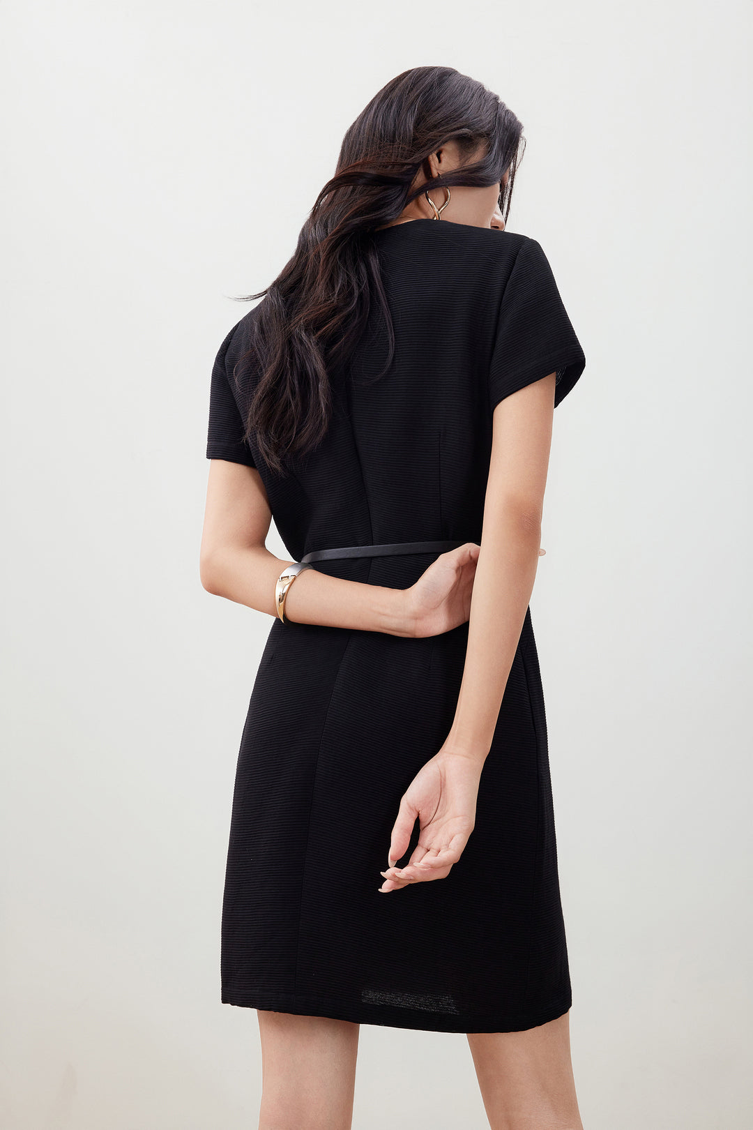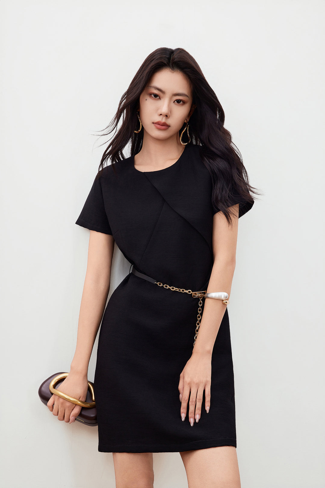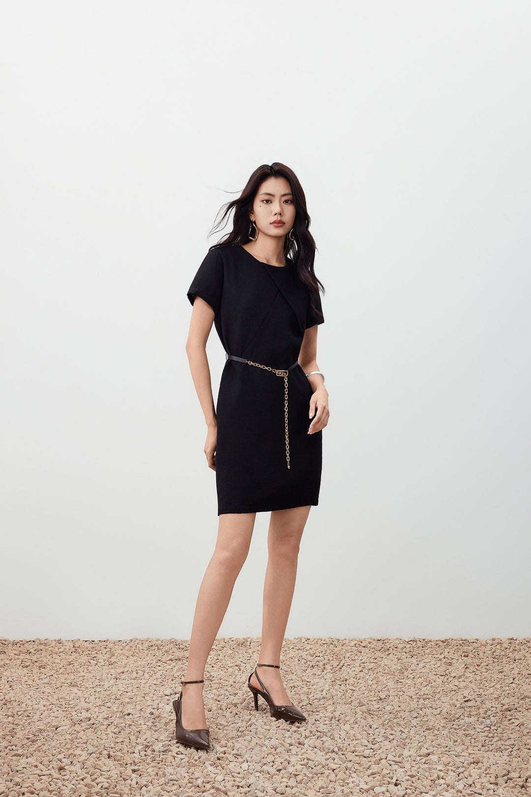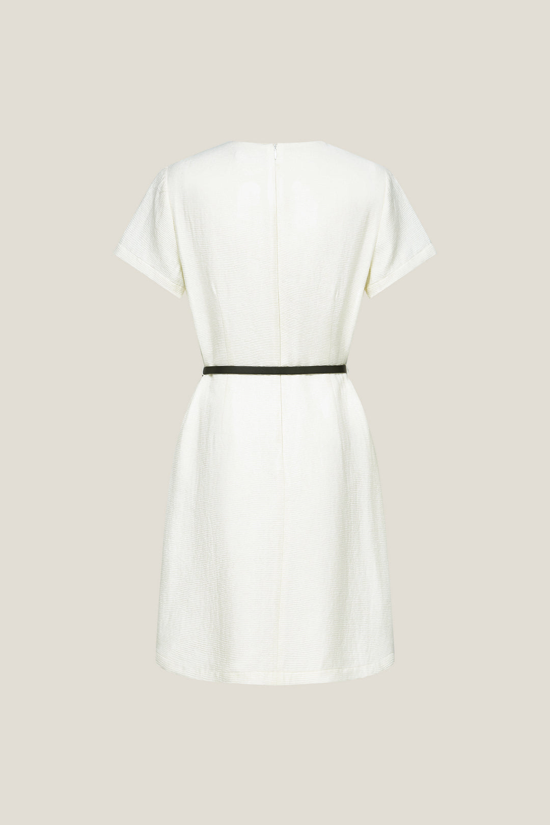 可機洗 | 附腰帶 | 圓領 | 內裡構造: 裙身全裡,袖子無裡 | 短袖