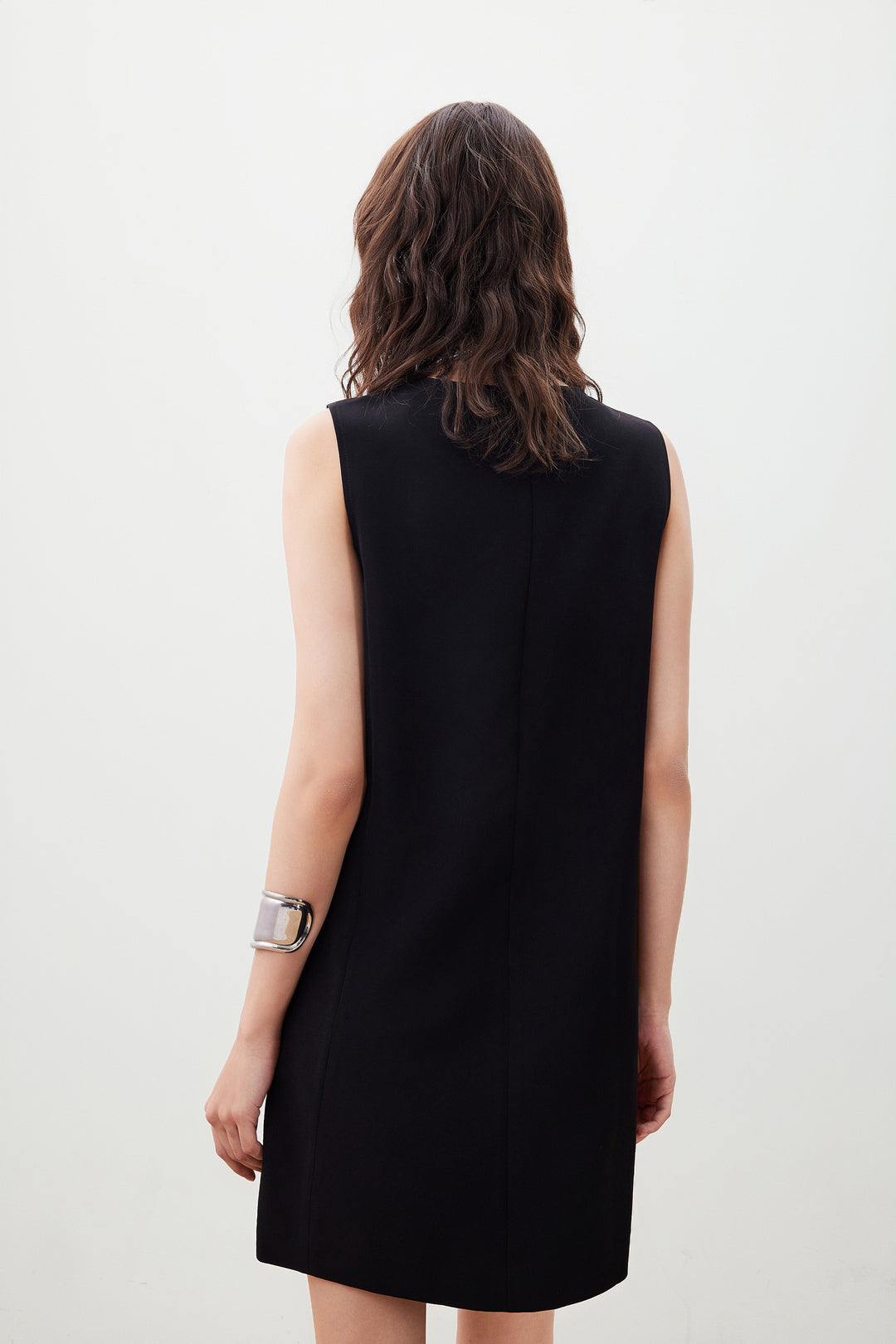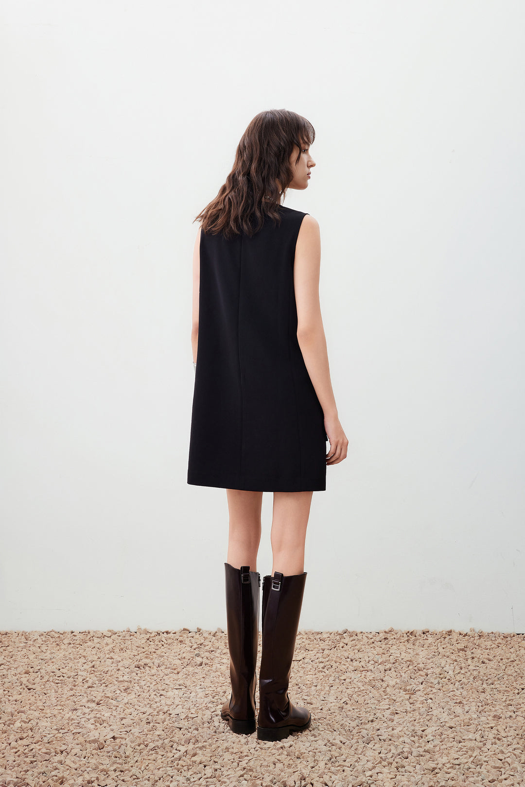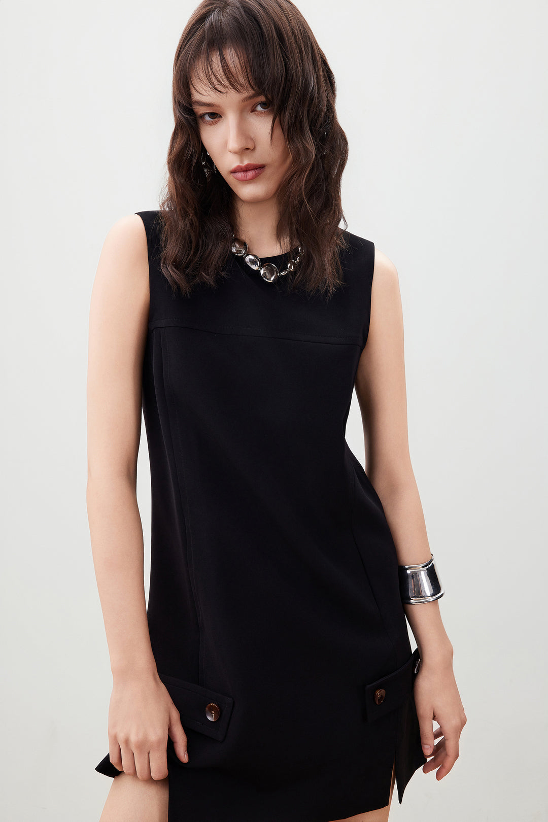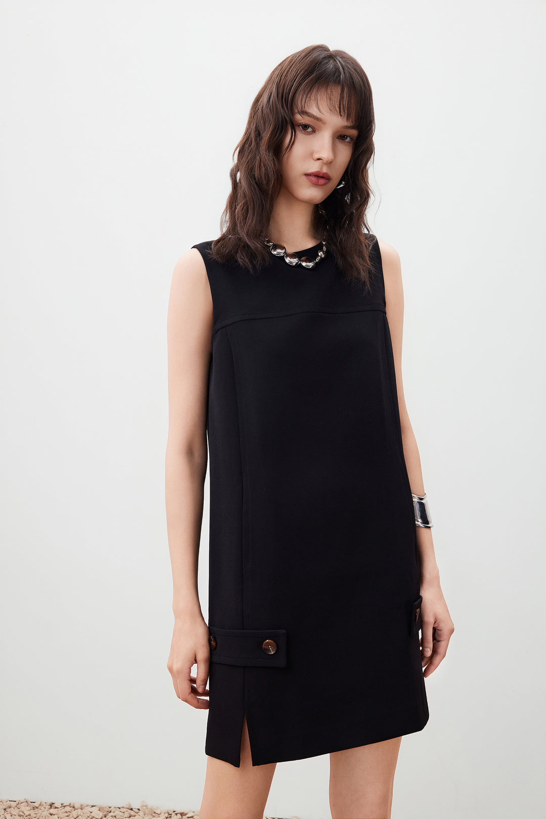 可機洗 | 圓領 | 內裡構造: 前肩有裡 | 無袖 | 裝飾鈕扣正面設計