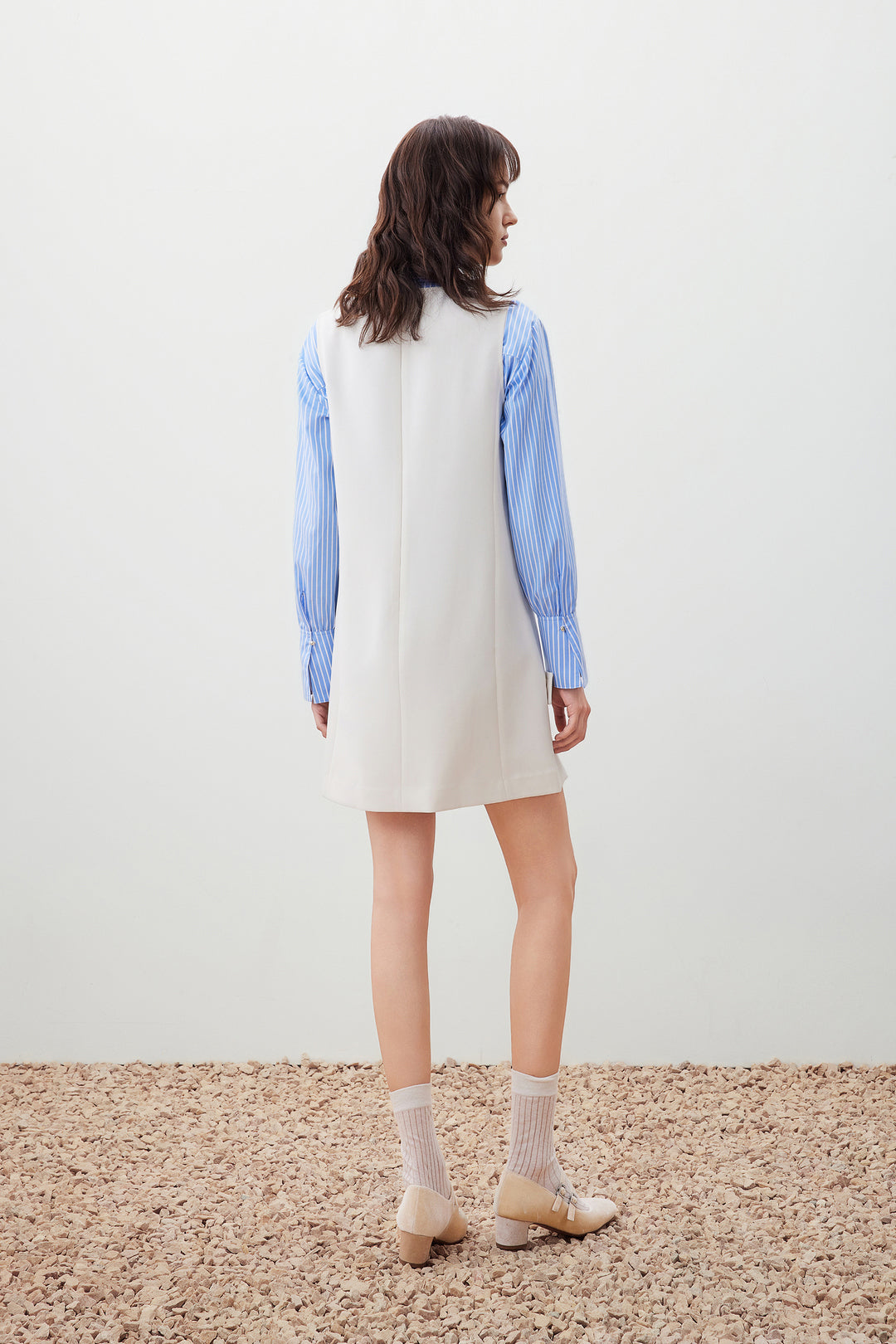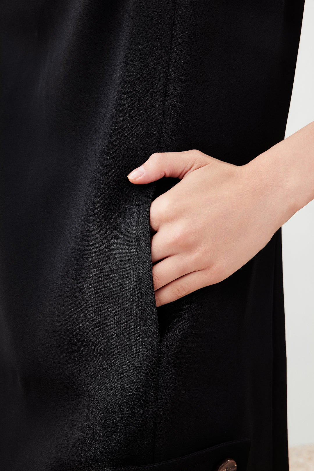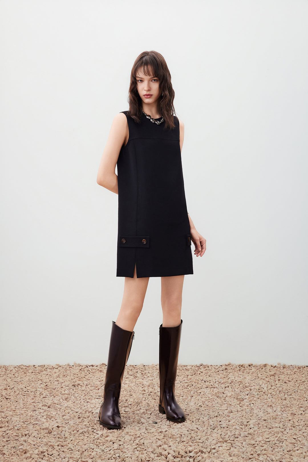可機洗 | 圓領 | 內裡構造: 前肩有裡 | 無袖 | 裝飾鈕扣正面設計