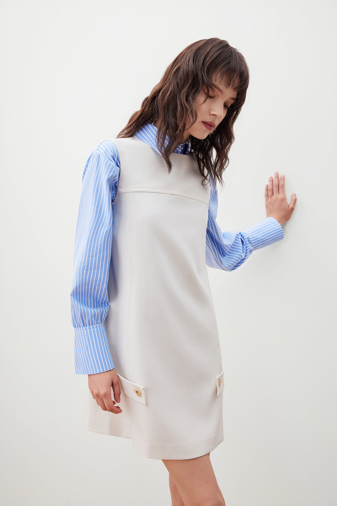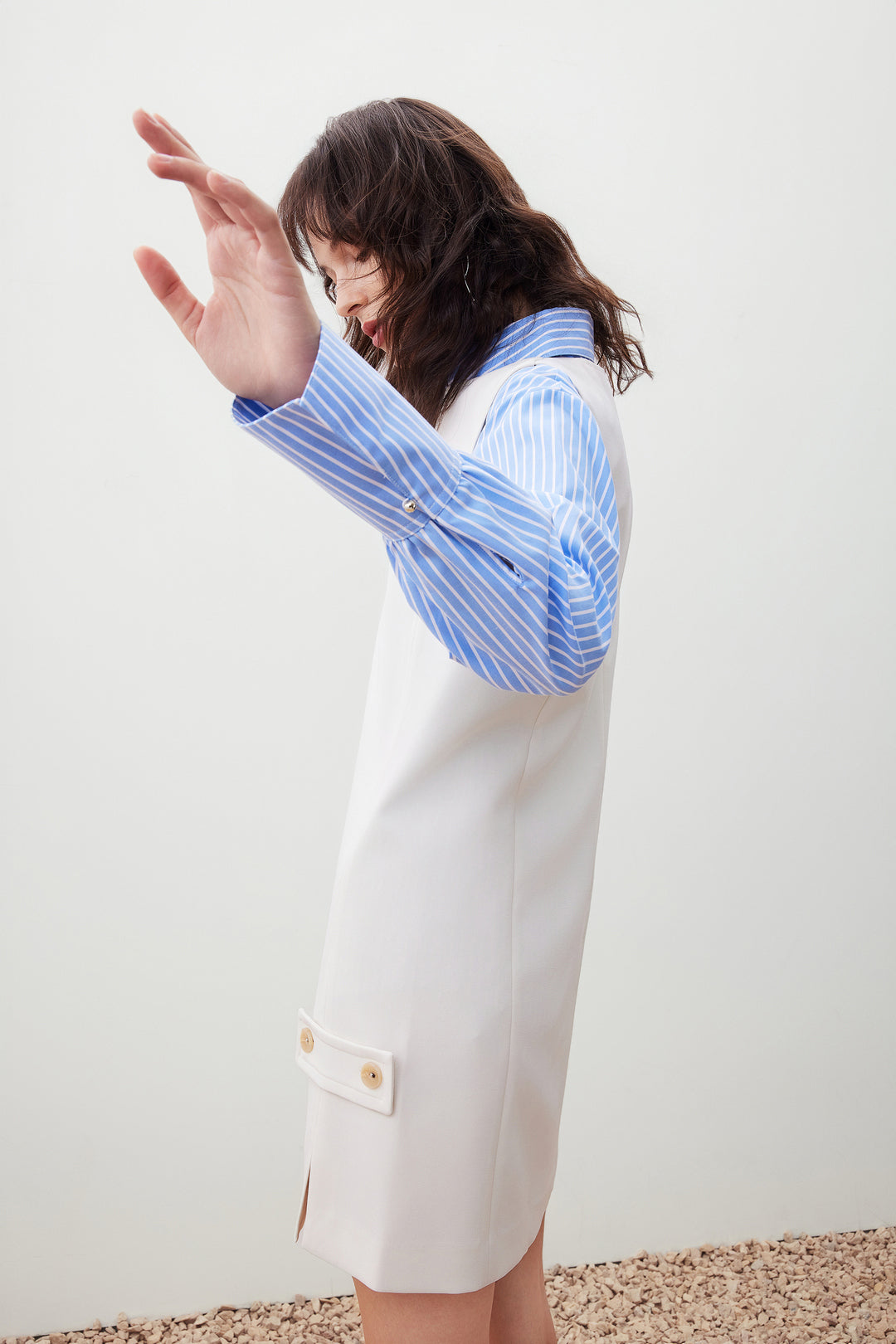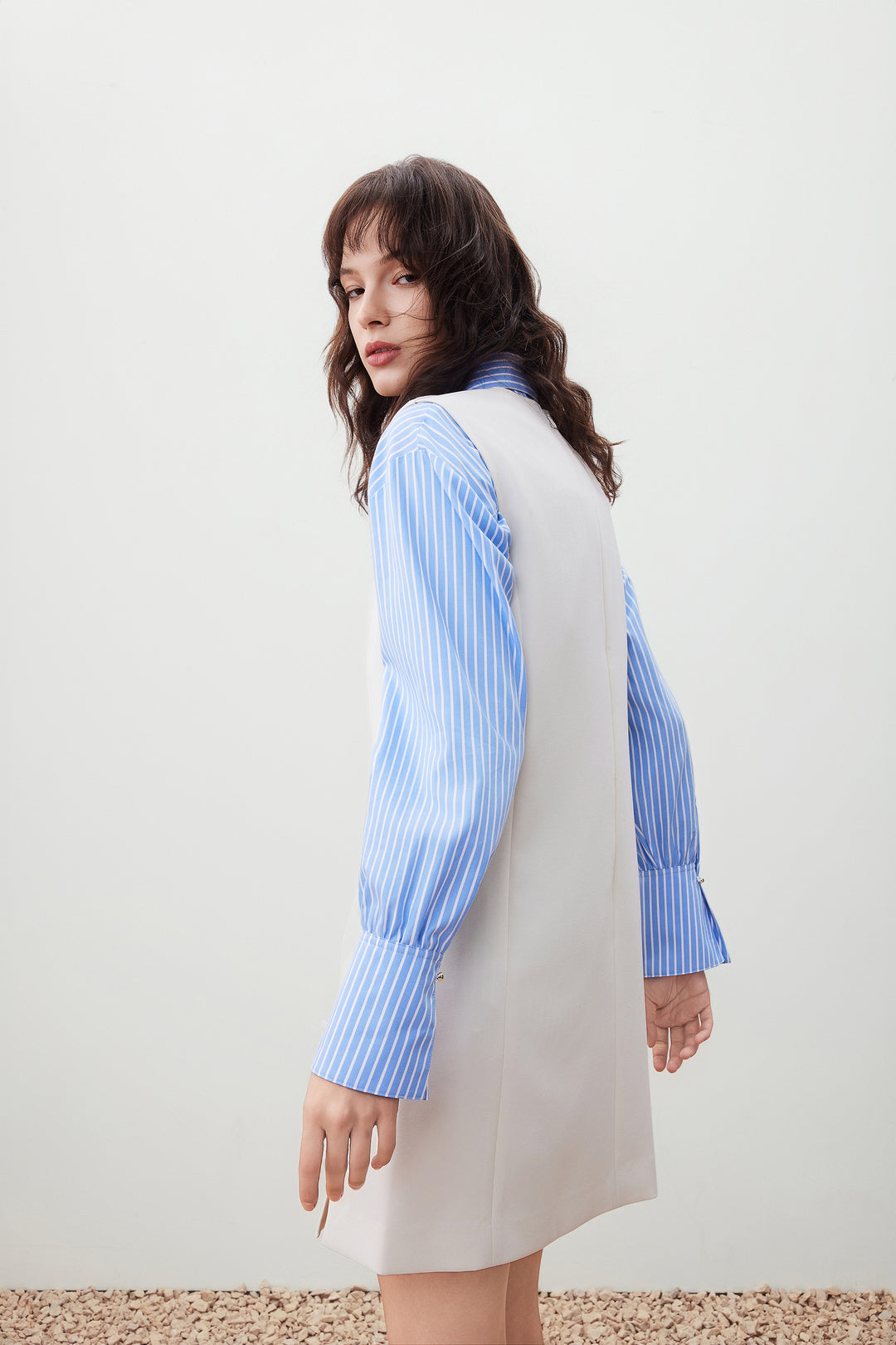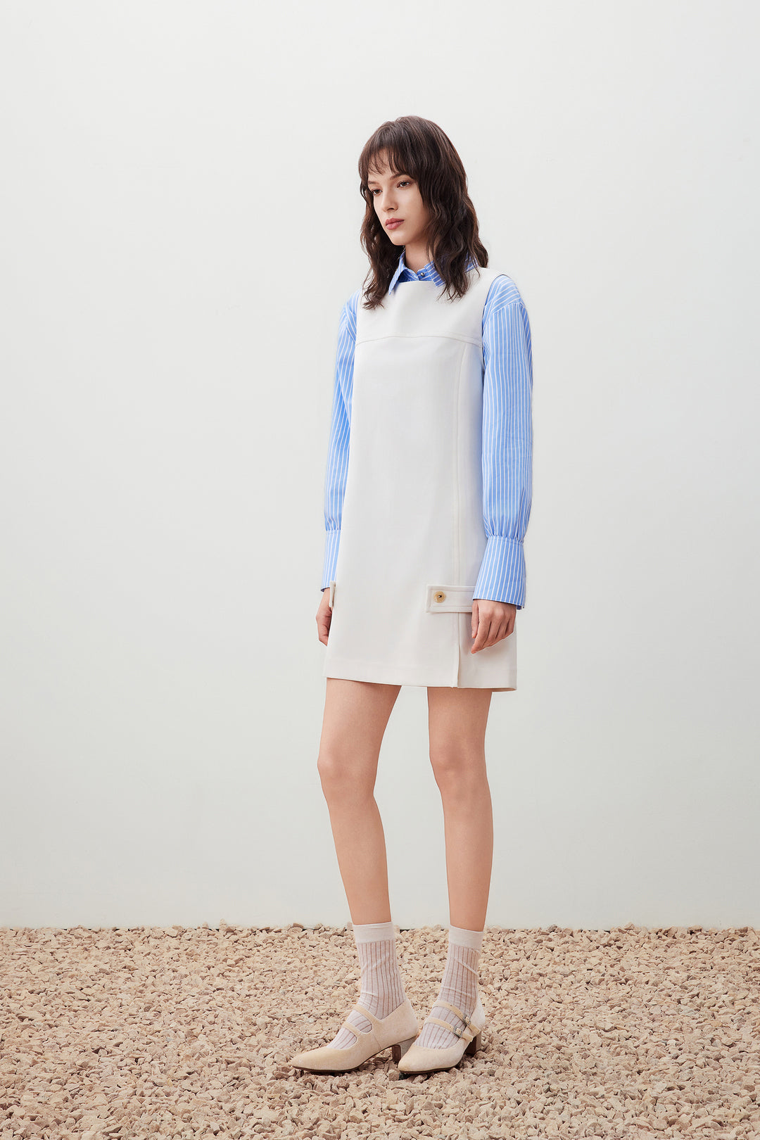 可機洗 | 圓領 | 內裡構造: 前肩有裡 | 無袖 | 裝飾鈕扣正面設計