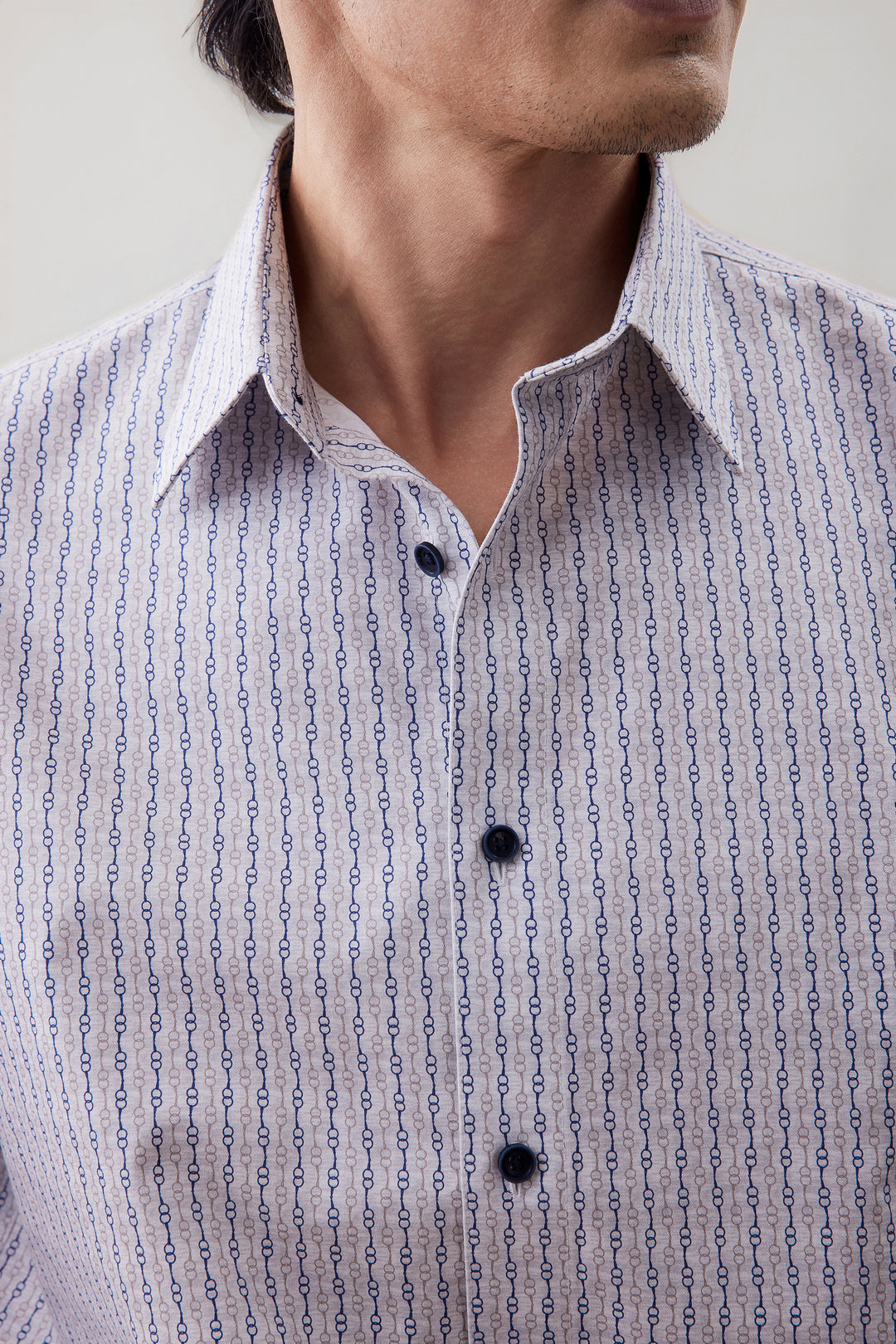可機洗 | Wrinkle Free防皺技術處理 | 標準領 | 圓形袖 | 前襟正面設計 | 一體式合縫