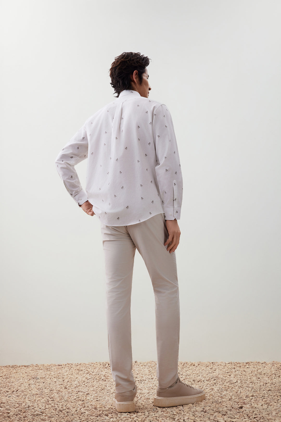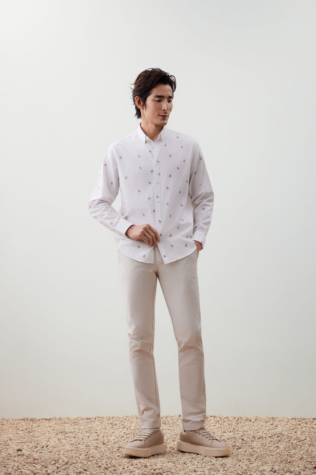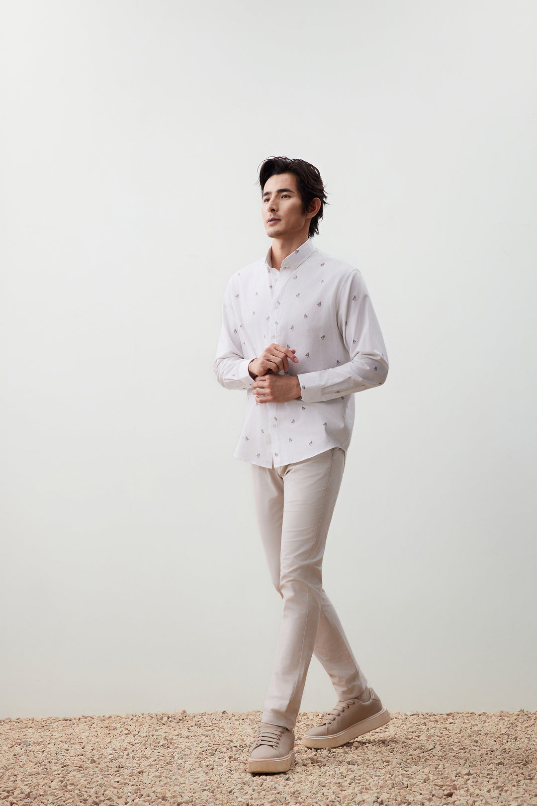 可機洗 | Wrinkle Free防皺技術處理 | 窄領 | 扣領 | 斜角袖 | 前襟正面設計 | 一體式合縫